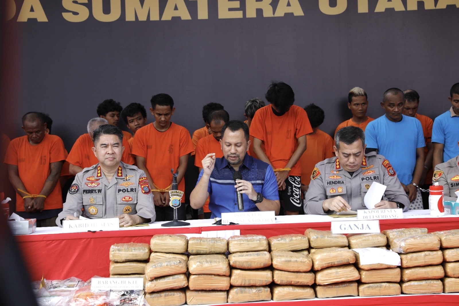 Ditambahkan Calvijn, berdasarkan hasil dari kerjasama Direktorat Reserse Narkoba Polda Sumut bersama Polres Deli Serdang, Tebing Tinggi dan Polres Serdang Bedagai, mengungkap sebanyak 862 kasus, dengan 1.010 tersangka.