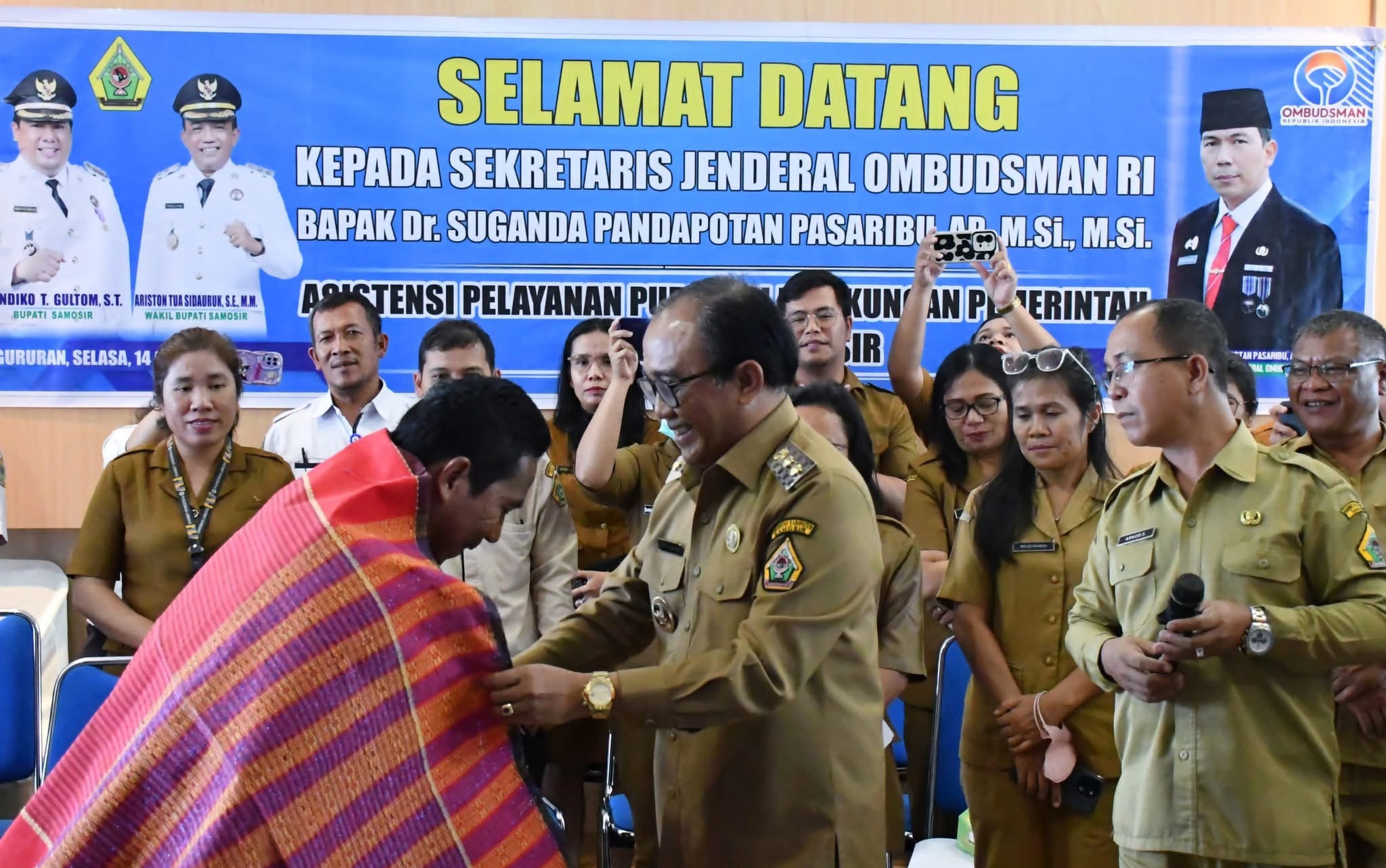 Dalam rangka peningkatan kualitas pelayanan publik di lingkungan Pemerintah Kabupaten Samosir, Sekretaris Jenderal Ombudsman Republik Indonesia Dr. Suganda P. Pasaribu, AP.,M.Si, M.Si, melakukan kunjungan kerja di Kabupaten Samosir, Selasa (14/10).