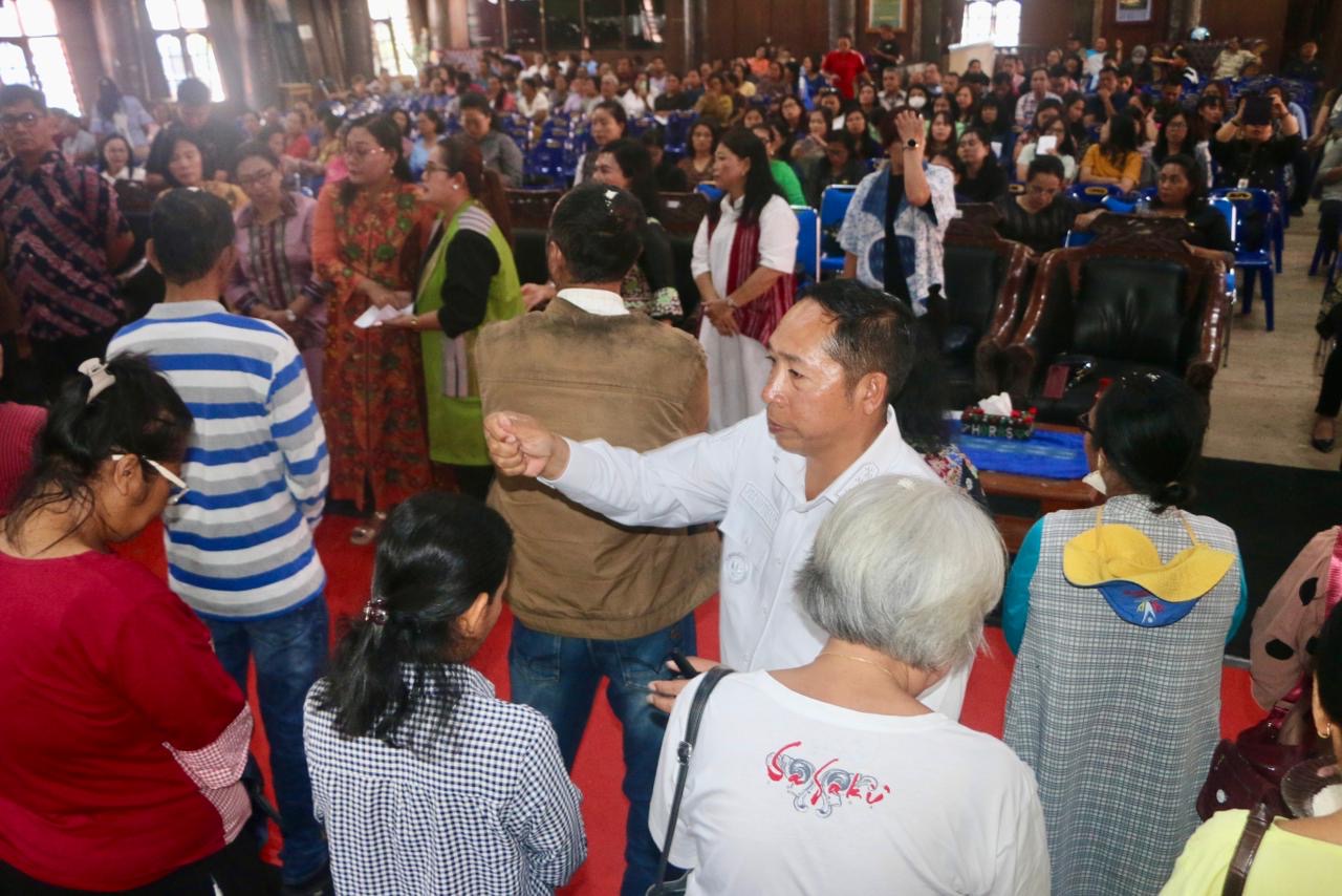 Pemerintah Kabupaten Tapanuli Utara menggelar Ibadah Doa Bersama bertema “Keselamatan Kabupaten Tapanuli Utara” sebagai wujud penguatan spiritual dan kepedulian bagi warga terdampak bencana, sekaligus menyalurkan bantuan yang diserahkan secara simbolis kepada perwakilan masyarakat dari Kecamatan Tarutung dan Siatas Barita bertempat di Gedung Kesenian Sopo Partungkoan, Tarutung, Jumat (5/12/2025).