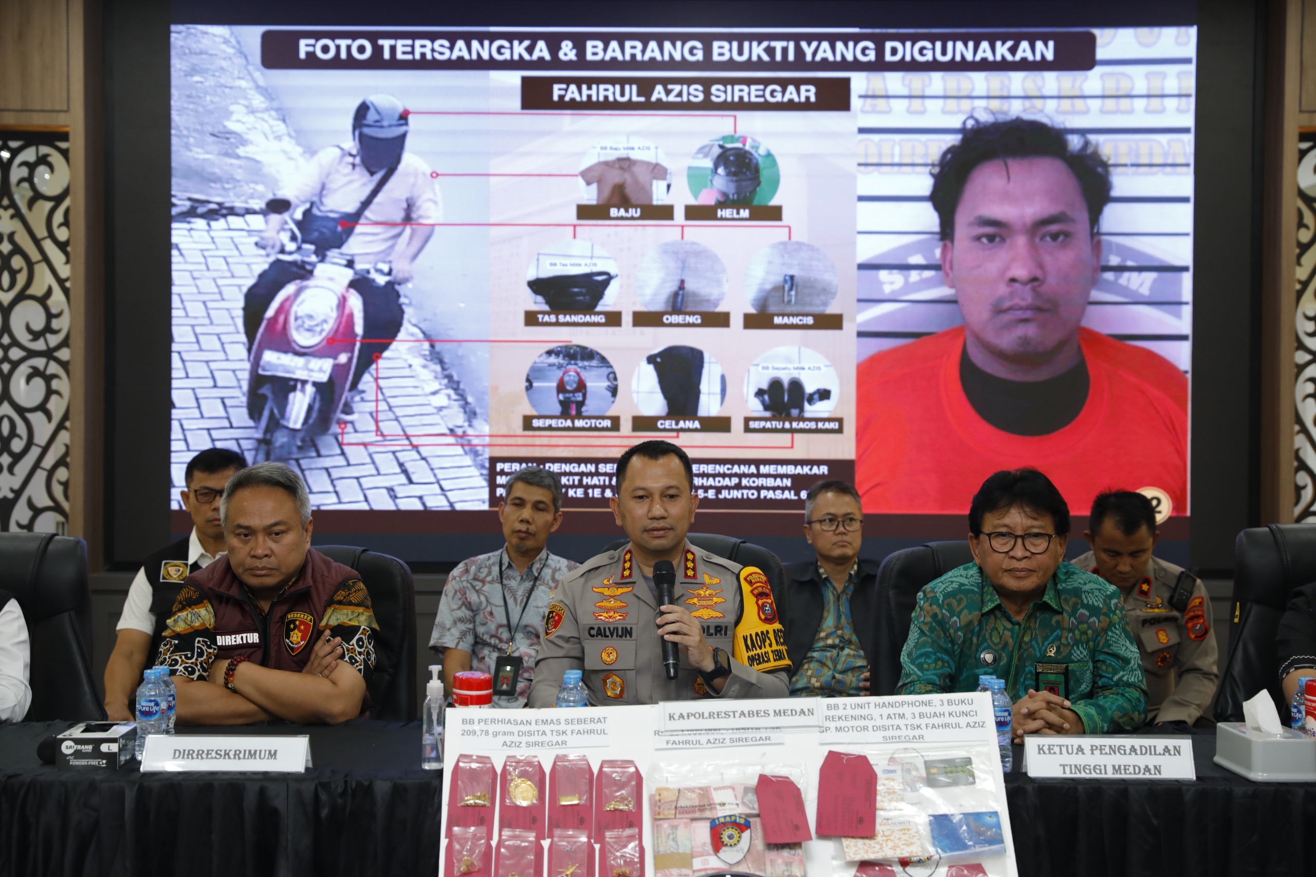 Konferensi pers turut dihadiri Dirreskrimum Polda Sumut Kombes Ricko Taruna Mauruh, Plt. Kabid Labfor KBP Abdul Karim Tarigan, Ketua Pengadilan Tinggi Medan Dr. H. Siswandriyono, Kasubdit Fiskom Labfor AKBP Anang Kusndi, Kasat Reskrim AKBP Bayu Putro Wijayanto, Kapolsek Sunggal Kompol Bambang G. Hutabarat, dan Kasi Humas AKP Halashon Sihotang.