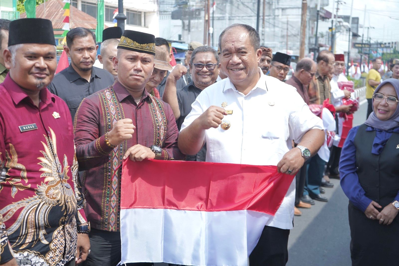 Sebanyak 3.250 bendera dibagikan—hasil gotong royong OPD dan dukungan swasta lokal. Dibagikan tidak hanya di kota, tapi juga ke desa, objek wisata, rumah veteran, komunitas pelajar, dan 14 perwakilan etnis di Asahan.