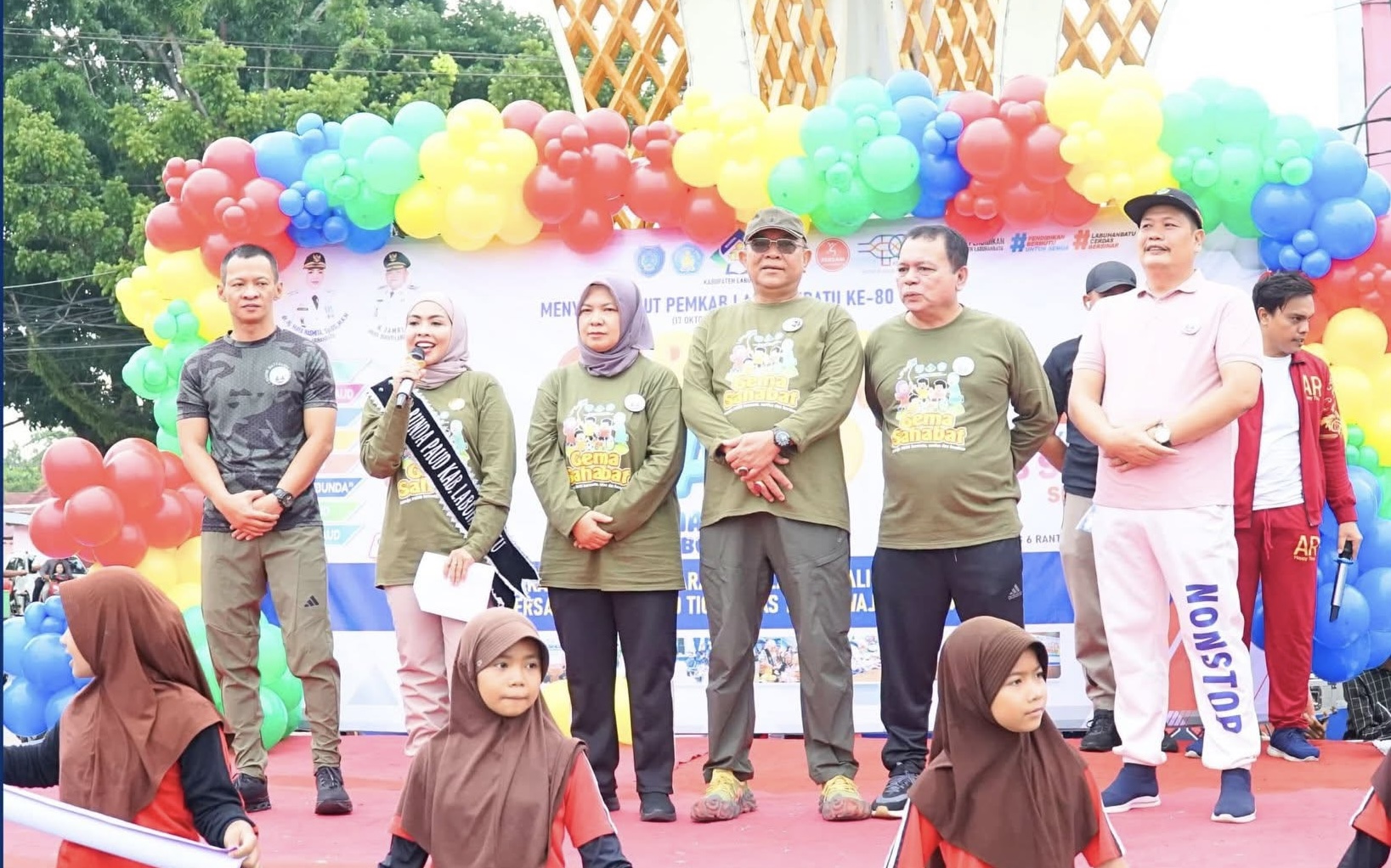 Dalam Rangka memeriahkan HUT Pemkab Labuhanbatu ke 80, Bunda PAUD Labuhanbatu dr. Hj. Maya Hasmita Sp.OG. M.KM menggelar Carnaval di Car Free Day, di Tugu Simpang Enam Rantauprapat, Kecamatan Rantau Utara, Minggu (12/10/2025).