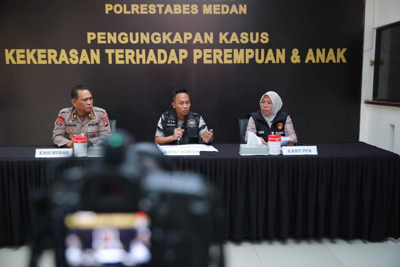 Penetapan tersangka disampaikan Kasat Reskrim Polrestabes Medan AKBP Bayu Putro Wijayanto dalam konferensi pers, Jumat (20/2/2026).