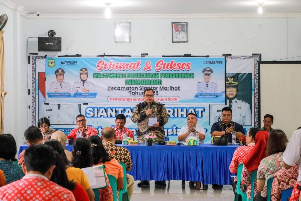Wali Kota Pematangsiantar Wesly Silalahi SH MKn mengajak untuk bersama-sama mewujudan kota yang Cerdas, Sehat, Kreatif, dan Selaras. Ajakan Wesly itu disampaikan dalam arahan dan bimbingan tertulisnya yang dibacakan Asisten Administrasi Umum Dedy Tunasto Setiawan SH MH, saat membuka Musyawarah Rencana Pembangunan (Musrenbang) Kecamatan Siantar Marihat, di Aula Lantai 2 Kantor Camat Siantar Marihat, Jalan Melanthon Siregar Pematangsiantar, Kamis (12/02/2026).
