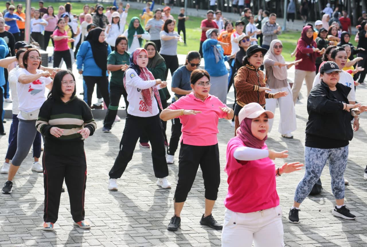 Ny Liswati Jalan Kaki Pergi dan Pulang dari Rumah Dinas Wali Kota, lalu Senam Bersama ASN di Lapangan Adam Malik
