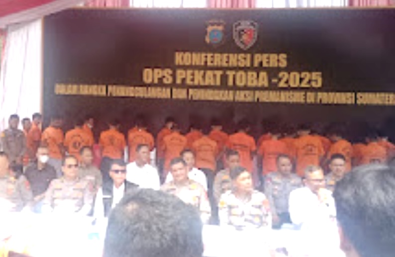 Polisi Daerah Sumatera Utara (Polda Sumut) menggelar konferensi pers terkait hasil Operasi Pekat Toba 2025 yang berlangsung sejak 1 Mei hingga 14 Mei 2025.
