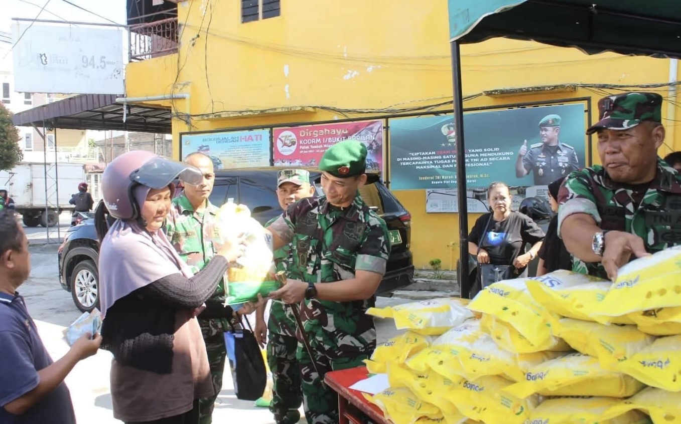 Komandan Kodim 0207/Simalungun Letkol Inf Gede Agus Dian Pringgana S.sos M.M.A.S.M.Han, yang didampingi oleh Perwira Stafnya, melakukan peninjuan ke lokasi Gerakan Pangan Murah (GPM) yang dilaksanakan di Koramil Jajaran Kodim 0207/Simalungun, Senin (25/8/2025).