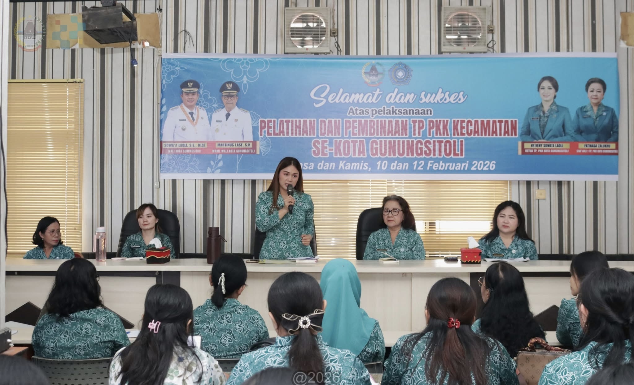 Pemerintah Kota Gunungsitoli terus memperkuat peran kader PKK sebagai garda terdepan pemberdayaan keluarga melalui Pelatihan dan Pembinaan TP PKK Kecamatan se-Kota Gunungsitoli Tahun 2026. Kegiatan ini secara resmi dibuka oleh Ketua TP PKK Kota Gunungsitoli, Ny. Veny Sowa’a Laoli, didampingi Staf Ahli I TP PKK Kota Gunungsitoli, Ibu Fatinasa Zalukhu, S.KM., MM.Kes, bertempat di Ruang Rapat IV Kantor Wali Kota Gunungsitoli, Selasa (10/02/2026).
