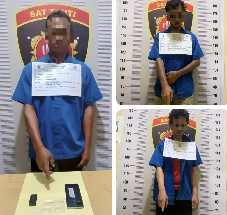 Satresnarkoba Polres Toba berhasil meringkus 3 Pelaku penyalahgunaan Narkotika Jenis Sabu, di lokasi yang berbeda di wilayah Kabupaten Toba, Sabtu (12/7/2025)