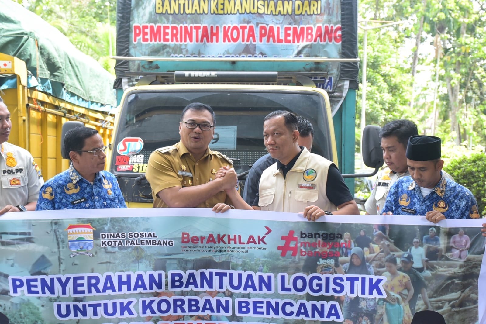 Sebelumnya, Kadis Sosial Pemkot Palembang, M Raimon Lauri AR SSTP MSi yang datang bersama Kepala Bidang (Kabid) Perlindungan Masyarakat (Linmas) Satuan Polisi Pamong Praja (Satpol PP) Kota Palembang, Robert Edison Hendri SSTP MH dan lainnya, mengatakan total bantuan yang dibawa sebanyak 10 truk berasal dari donasi sekitar 20 ribuan ASN Pemkot Palembang, dan organisasi masyarakat (ormas) di antaranya organisasi kesukuan, baik Batak, Minang dan lainnya.