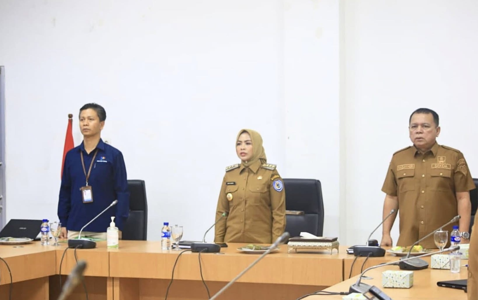 Rapat koordinasi pengendalian inflasi dan penanggulangan kemiskinan daerah diruang rapat Bupati Labuhanbatu, jalan SM. Raja Rantauprapat, Kelurahan Ujung Bandar, Kecamatan Rantau Selatan, Senin (8/9/2025).