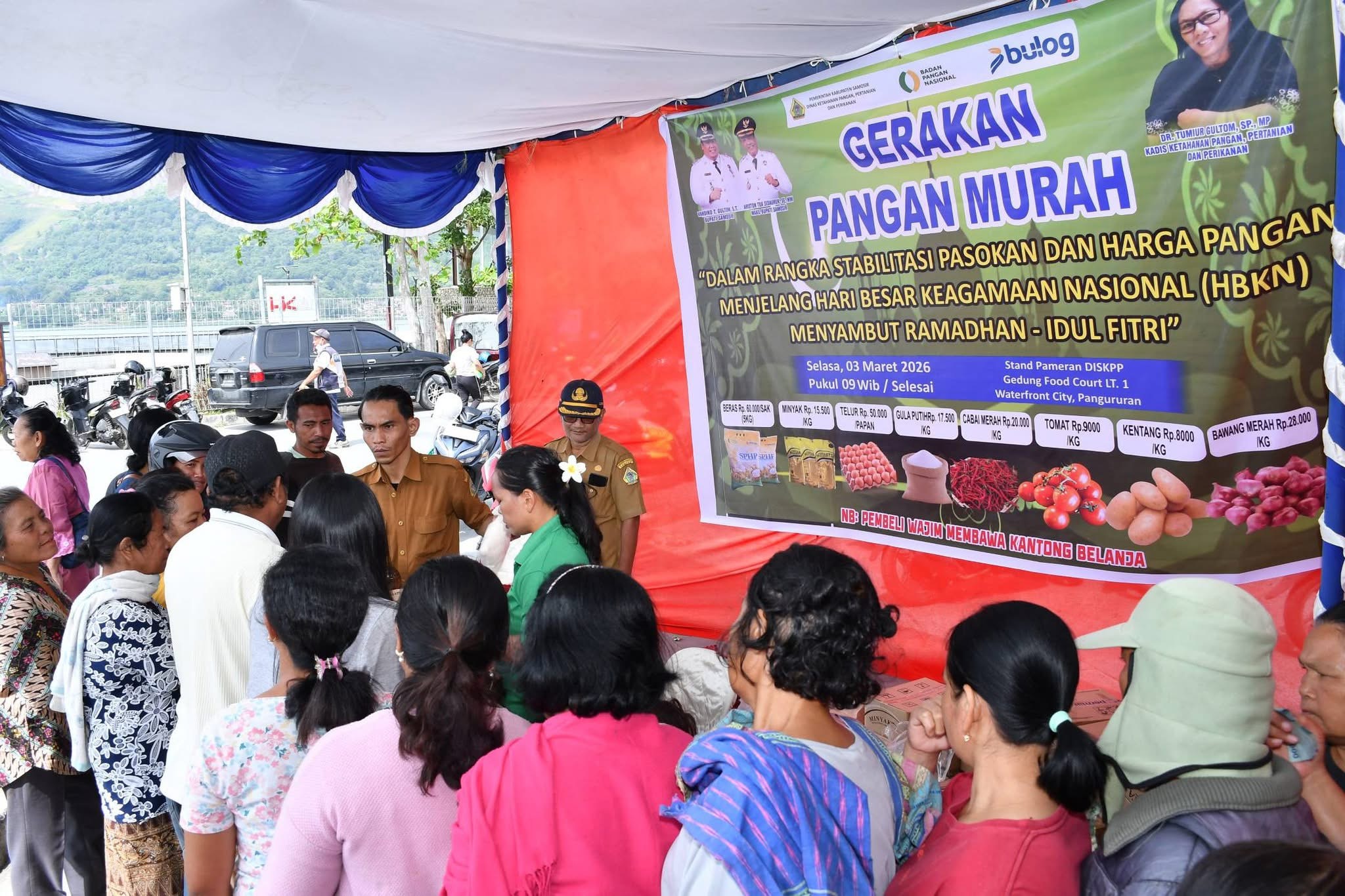 Dalam rangka stabilisasi pasokan dan harga pangan menjelang Hari Besar Keagamaan Nasional (HKBN) menyambut Ramadhan–Idul Fitri, Pemerintah Kabupaten Samosir menyelenggarakan Gerakan Pangan Murah di Gedung Food Court Lt. 1 Waterfront Pangururan, Selasa (03/03/2026).