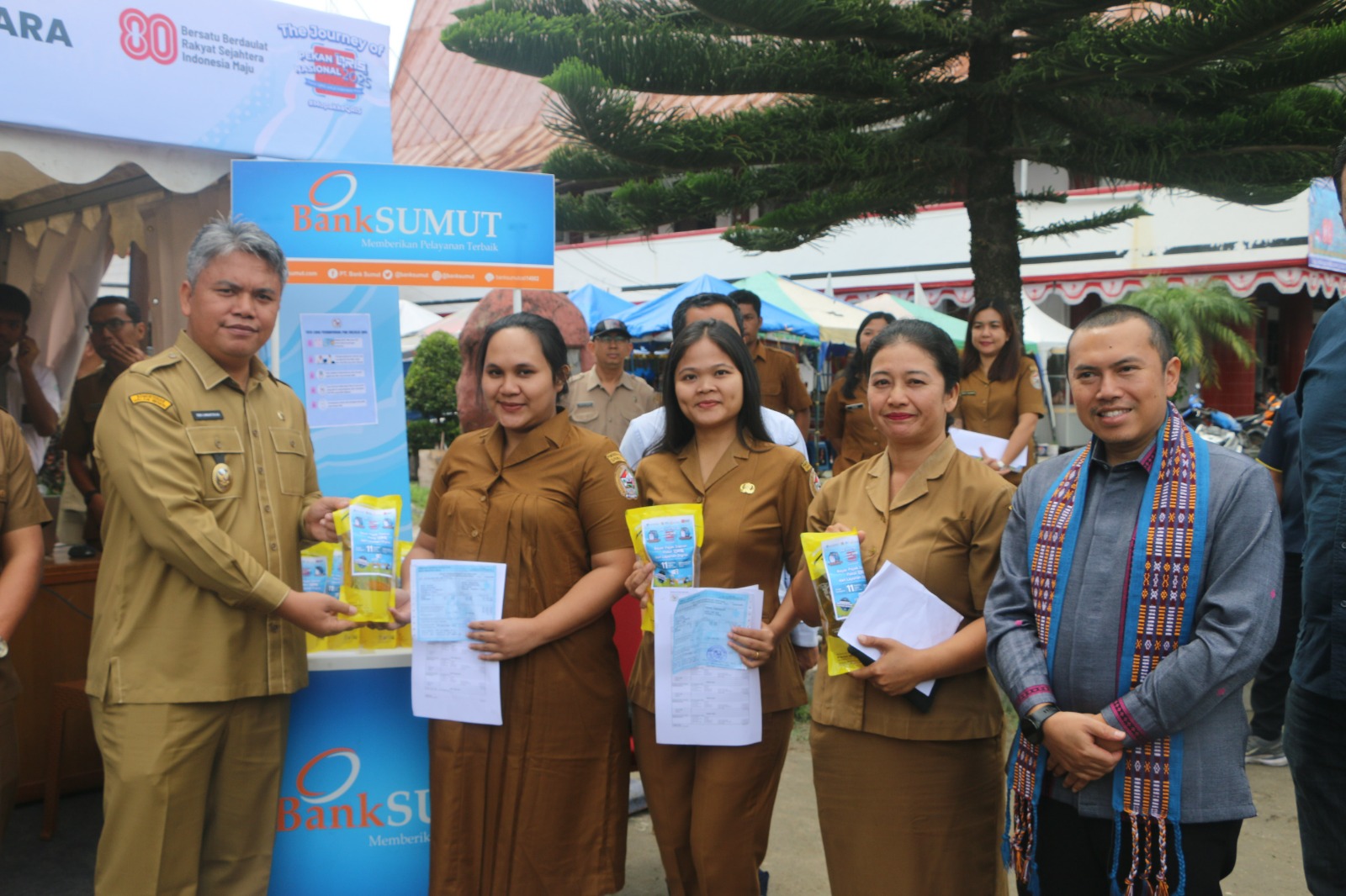 Turut hadir Deputi Kepala Perwakilan Bank Indonesia Sibolga, Suwarha W. Wirapermana beserta rombongan, Pj. Sekretaris Daerah Kabupaten Tapanuli Utara David Sipahutar, Kepala Badan Pendapatan Daerah, Kepala Dinas Koperasi, UKM, Perindag, Kepala Bagian Perekonomian dan SDA Setdakab Tapanuli Utara, perwakilan Bank Sumut Cabang Tarutung, perwakilan Area Head Bank Mandiri, Kepala Cabang Bank Mandiri Tarutung, para pengurus Dekranasda serta para pelaku UMKM Tapanuli Utara.