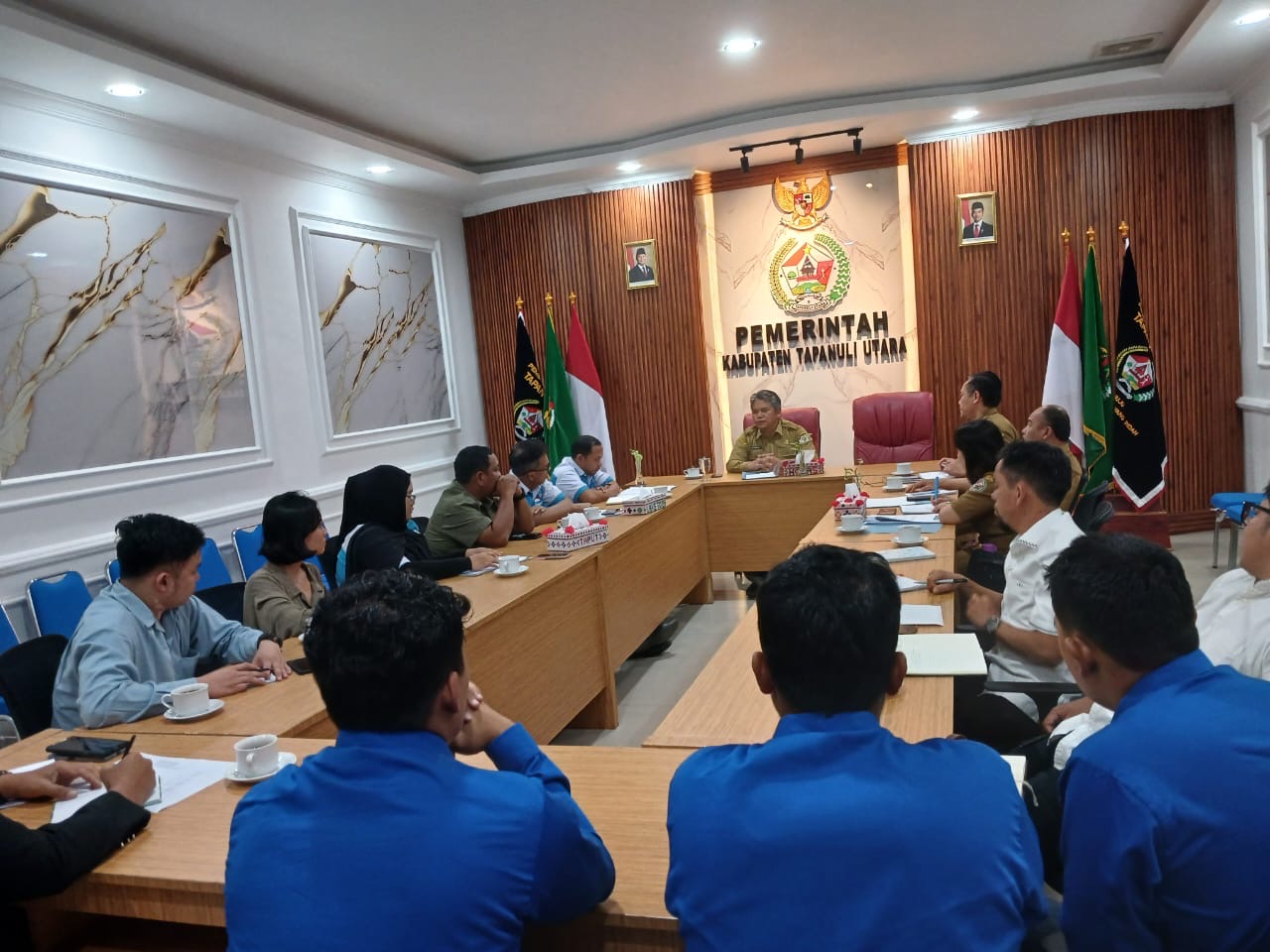 Wakil Bupati Tapanuli Utara Dr. Deni Lumbantoruan, M.Eng didampingi Kepala Dinas Ketenagakerjaan Josua JE Hutabarat melaksanakan pembahasan terkait percepatan Program Kredit Usaha Rakyat (KUR) untuk pekerja migran bersama 4 (empat) Lembaga Pelatihan Kerja (LPK) Swasta, Perseroda dan Petani Milenial, bertempat di Ruang Rapat Mini Kantor Bupati Taput, Tarutung (Senin/03 Nopember 2025).