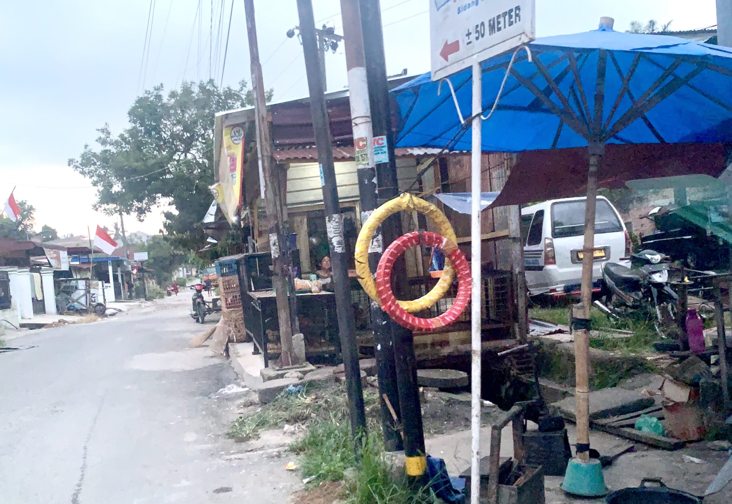 Keberadaan bangunan tersebut menyumbat aliran air di saluran drainase atau parit, sehingga menyebabkan genangan air di jalan ketika hujan deras.