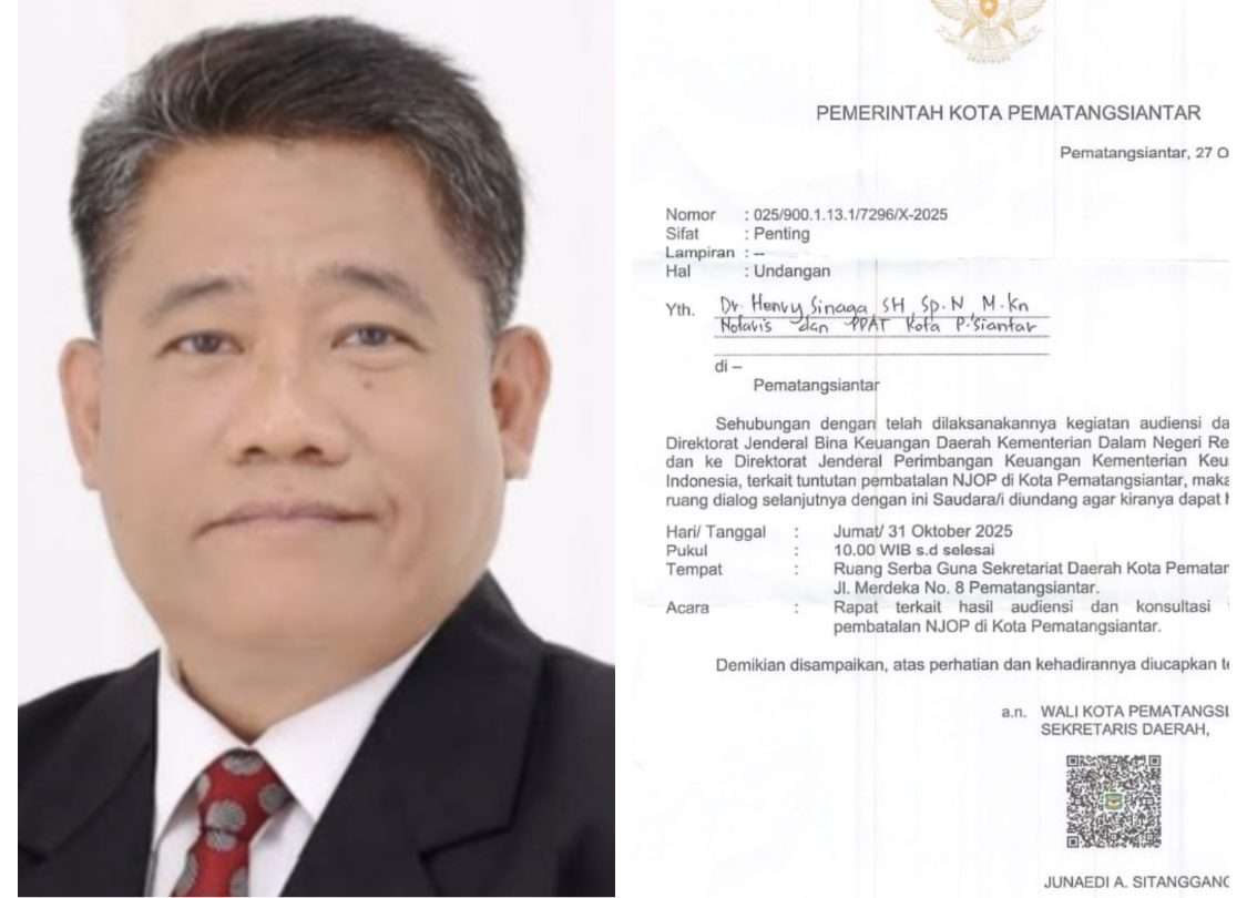 Sebelumnya Dr. Henry Sinaga juga sudah pernah diundang oleh Pemko Siantar pada 15 September 2025 yang lalu terkait rencana pembatalan kenaikan NJOP 1.000 persen tersebut setelah terlebih dahulu melakukan konsultasi dengan Mendagri.