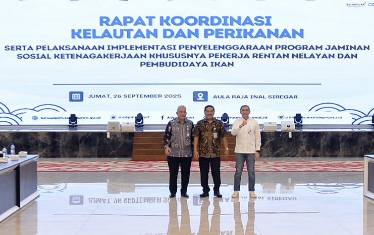 Hal tersebut disampaikan Sekretaris Daerah Provinsi (Sekdaprov) Sumatera Utara (Sumut) Togap Simangunsong saat membuka Rapat Koordinasi (Rakor) Implementasi Penyelenggaraan Program Jaminan Sosial Ketenagakerjaan bagi Nelayan dan Pembudidaya Ikan, di Aula Raja Inal Siregar, Kantor Gubernur Sumut, Jumat (26/9/2025).