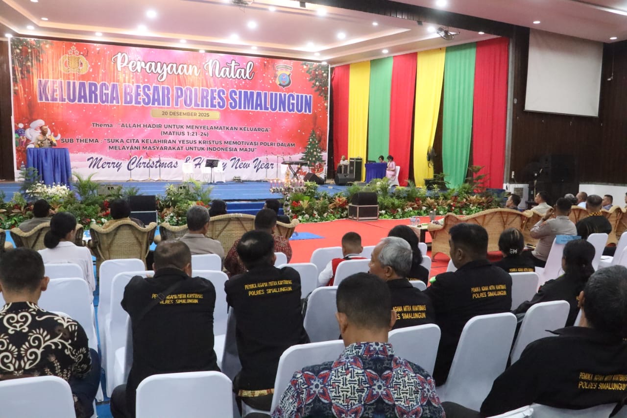 Suasana penuh kehangatan dan kebersamaan menyelimuti Aula Universitas HKBP Nommensen, Jalan Sangnawalu, Kelurahan Siopatsuhu, Kecamatan Siantar Timur, pada Sabtu (20/12/2025) sore. Keluarga besar Polres Simalungun berkumpul merayakan Natal 2025 dalam suasana penuh sukacita dan kekhidmatan.