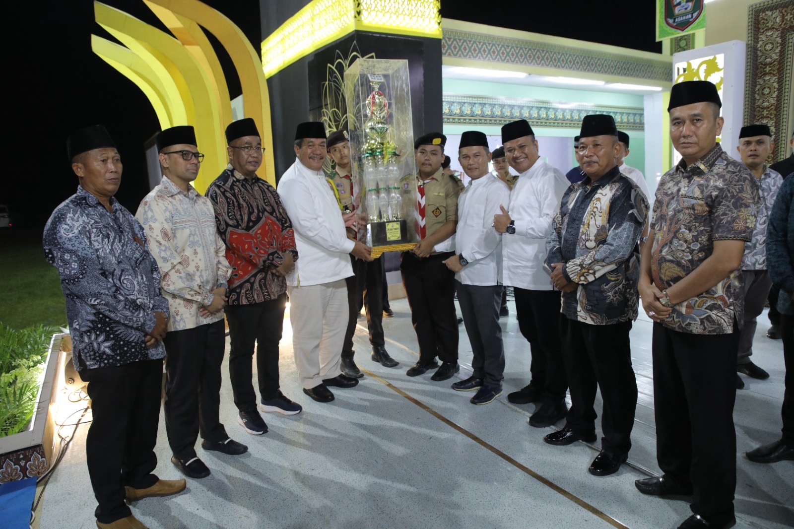 Bupati Asahan, Taufik Zainal Abidin Siregar, S.Sos., M.Si. memberikan biaya umroh kepada 4 orang pemenang Musabaqah Tilawatil Quran Nasional (MTQN) ke-56 Tingkat Kabupaten Asahan, Senin (21/04/2025) malam di Lapangan Sepak Bola Universitas Asahan (UNA), Kelurahan Kisaran Naga, Kecamatan Kota Kisaran Barat.
