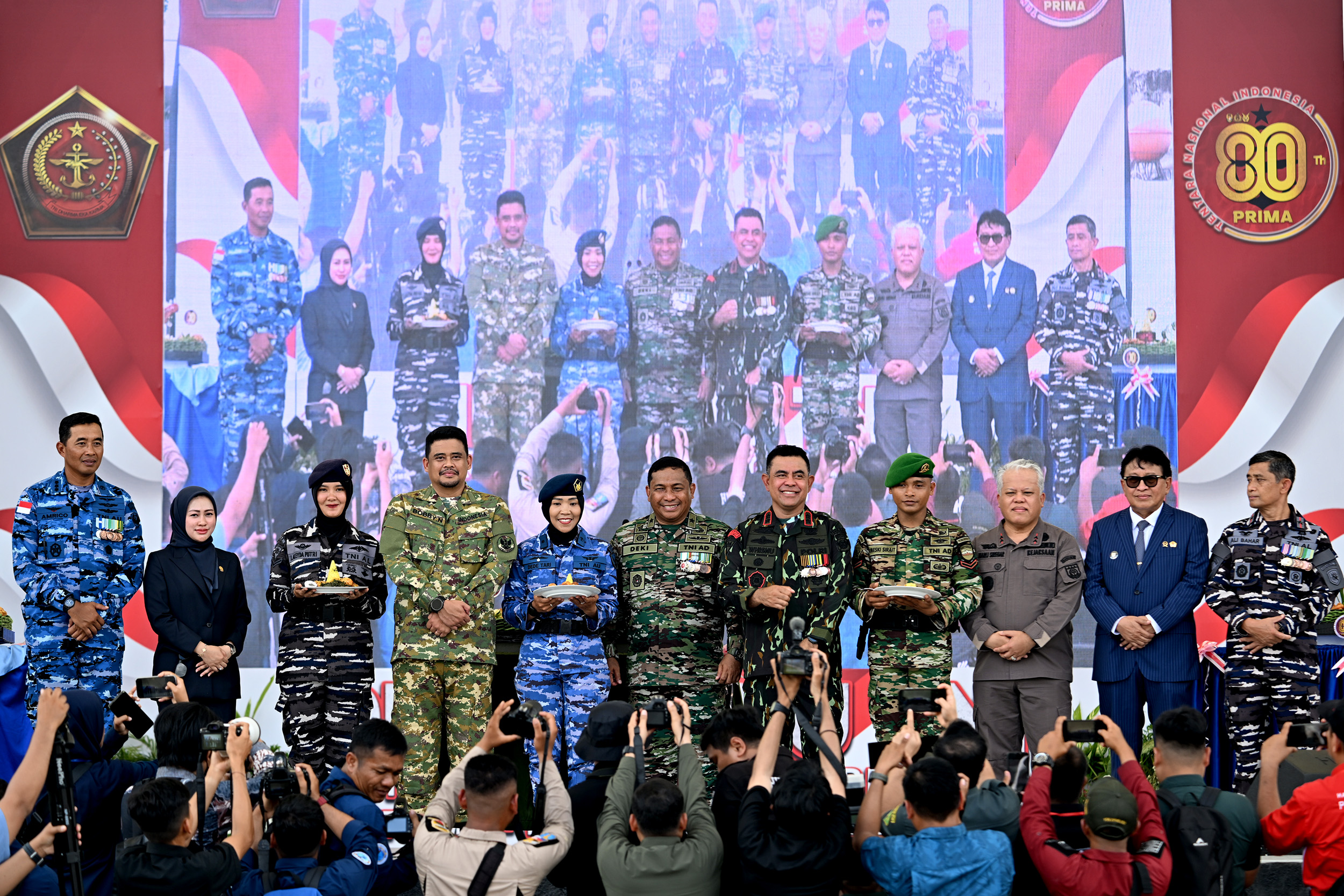 Gubernur Sumatera Utara (Sumut) Bobby Nasution bersama Forum Koordinasi Pimpinan Daerah (Forkopimda) Sumut menghadiri Perayaan Hari Ulang Tahun (HUT) ke-80 Tentara Nasional Indonesia (TNI). Kegiatan yang mengusung tema ‘TNI Prima, TNI Rakyat, Indonesia Maju’, tersebut berlangsung di Lapangan Merdeka Medan, Minggu (5/10/2025).