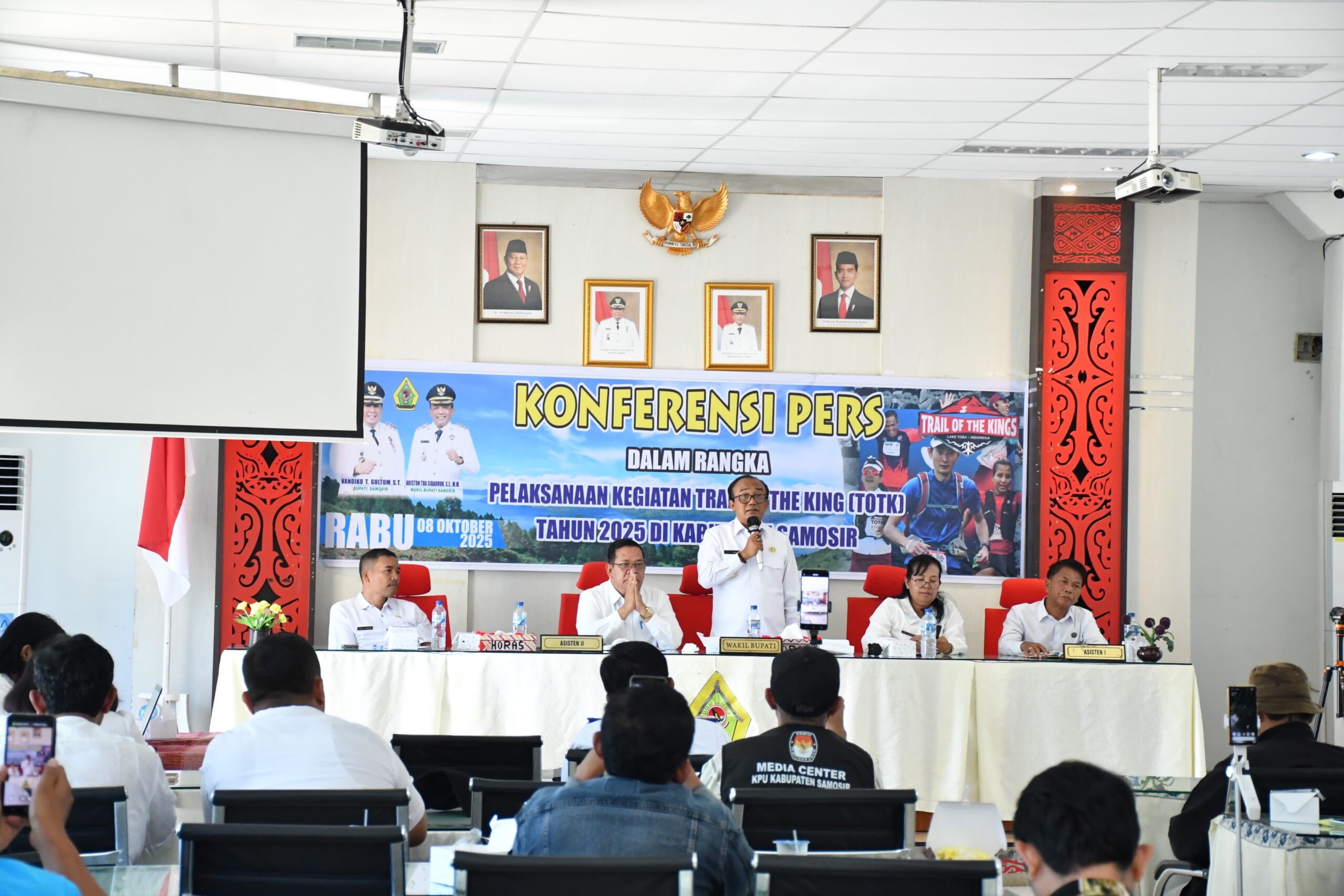 Pemerintah Kabupaten Samosir melalui Dinas Komunikasi dan Informatika menggelar Temu Pers Trail Of The King (TOTK) by UTMB dengan wartawan/jurnalis yang bertugas di Wilayah Samosir. Kegiatan yang bertujuan untuk menjalin silaturahmi dan menyampaikan berbagai informasi penting yang berkaitan dengan TOTK dipimpin Wakil Bupati Samosir Ariston Tua Sidauruk di Aula Kantor Bupati Samosir, Rabu (08/10/2025).