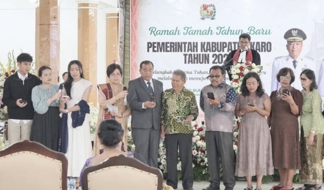 Pemerintah Kabupaten Karo menggelar acara Ramah Tamah Tahun Baru 2026 yang berlangsung dengan khidmat dan penuh kekeluargaan, dilaksanakan di Pendopo Rumah Dinas Bupati Karo pada Jumat (9/01/2025). Bupati Karo, Brigjen Pol (Purn) Dr. dr. Antonius Ginting, Sp.OG., M.Kes., sebagai Tuan Rumah Ramah Tamah tersebut.