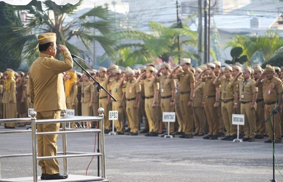 Bupati Karo, Brigjen Pol (Purn) Dr. dr. Antonius Ginting, Sp.OG., M.Kes, memimpin apel gabungan Aparatur Sipil Negara (ASN) di lingkungan Pemerintah Kabupaten Karo yang berlangsung di halaman Kantor Bupati Karo, Kabanjahe, Senin (26/01/2026)