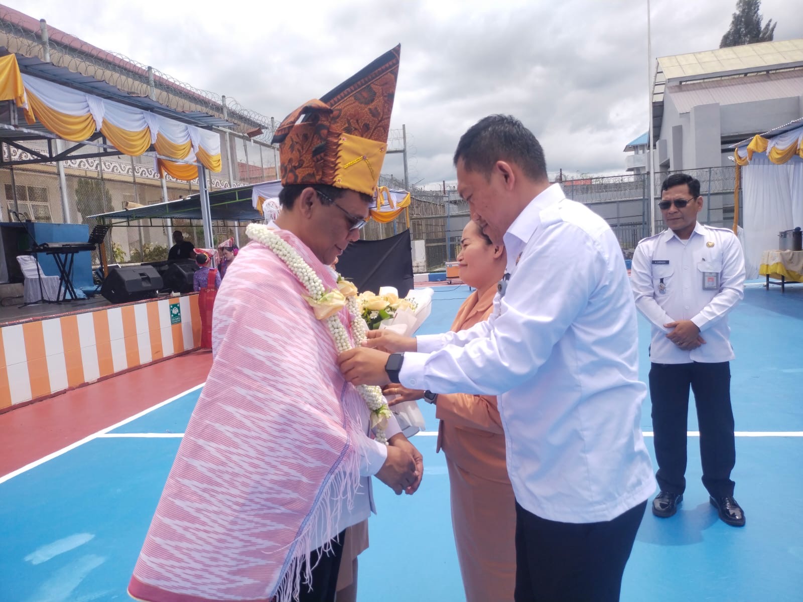 Acara pisah sambut Kalapas Narkotika Kelas IIA Pematangsiantar dari Robinson Peranginangin kepada Pujiono Slamet menjabat sebagai Kalapas Narkotika Kelas IIA Pematangsiantar yang baru, Rabu (14/5/2025).