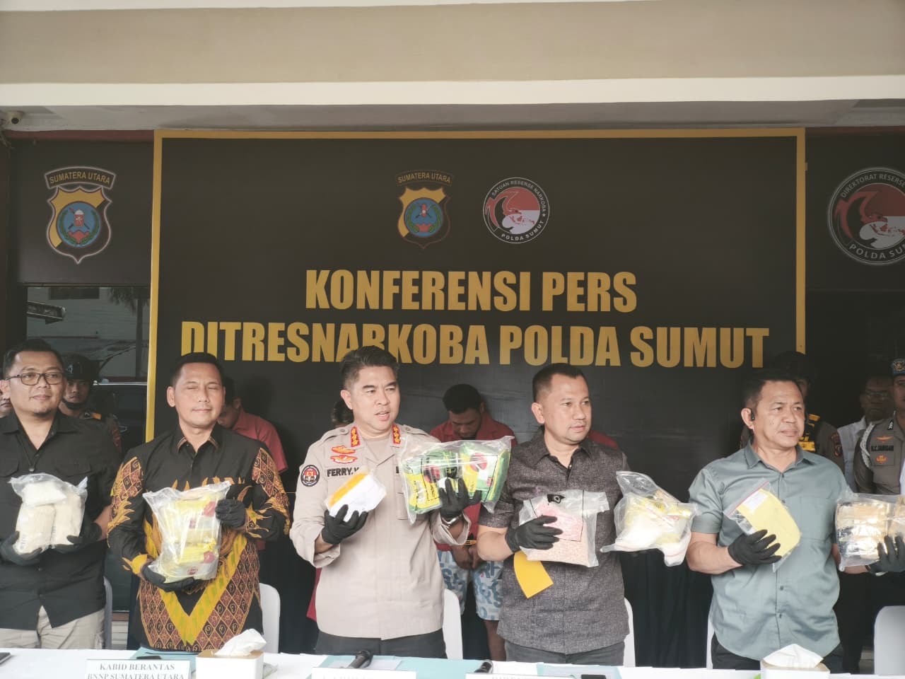 Kepala Bidang Humas Polda Sumut Kombes Pol Ferry Walintukan mengatakan, para tersangka kini telah menjalani proses hukum, dan sebagian telah dijatuhi vonis oleh pengadilan. Dari pengungkapan itu, polisi menyita 43 kilogram sabu, 3 kilogram ganja, 1.190,50 butir pil ekstasi, serta 28 butir pil happy five.
