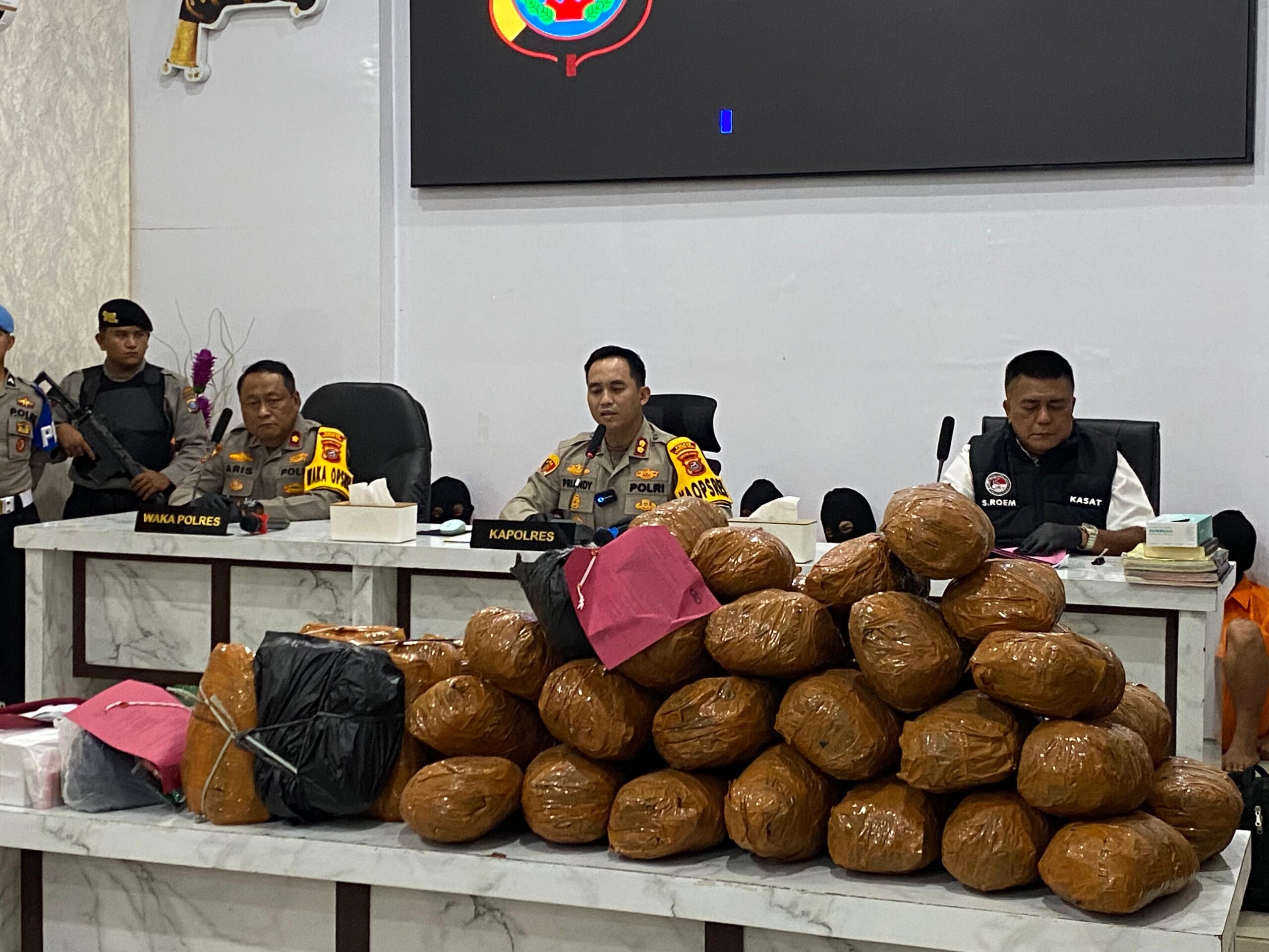 Adapun barang bukti yang berhasil diamankan meliputi narkotika jenis sabu seberat 9,01 gram dan ganja seberat 97.845,80 gram. Selain itu, turut disita sejumlah barang bukti pendukung berupa satu unit mobil Avanza warna hitam, tiga unit sepeda motor, sembilan unit handphone, delapan alat hisap sabu (bong), serta uang tunai sebesar Rp2.355.000.