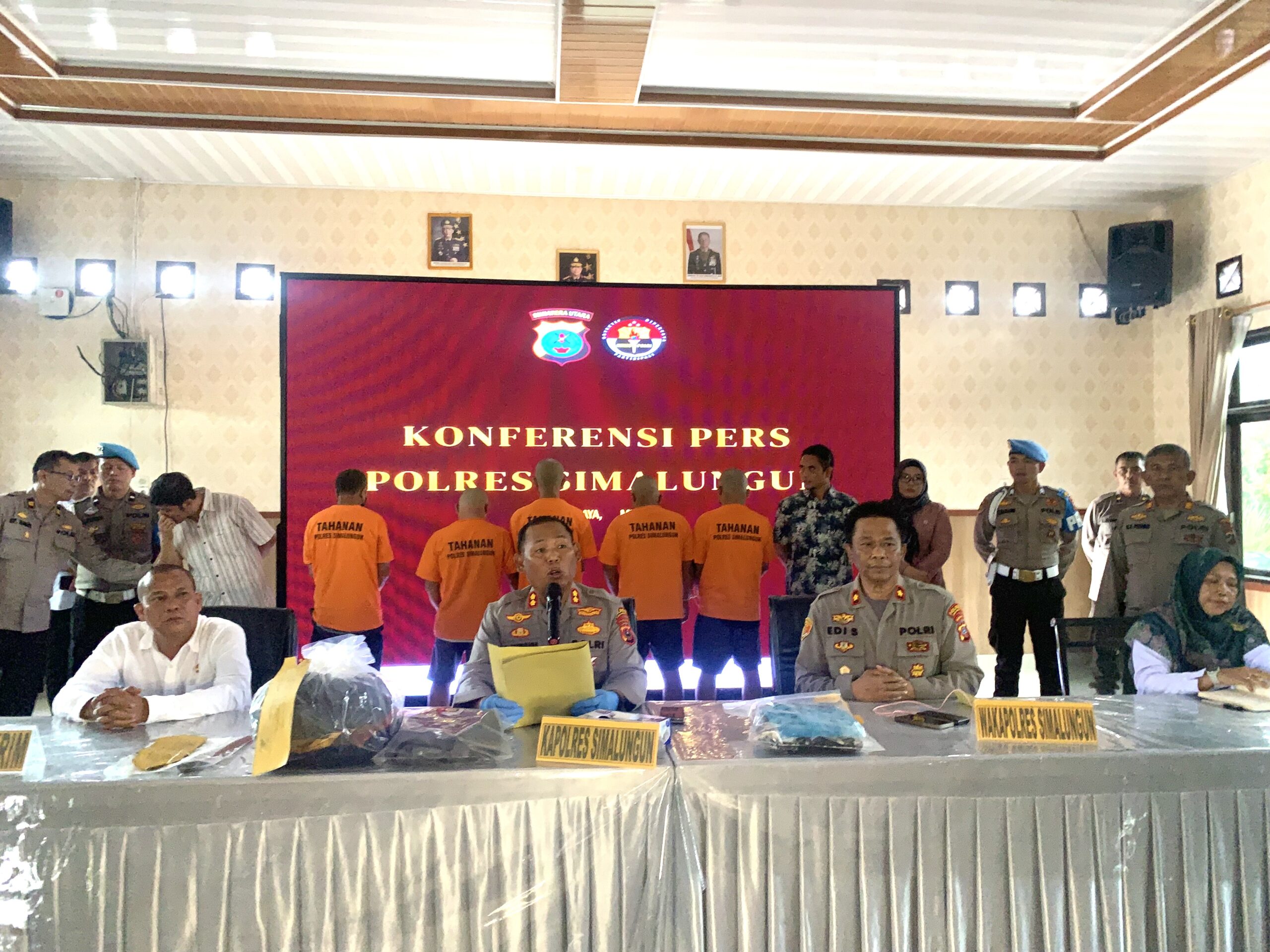 Kapolres Simalungun AKBP Marganda Aritonang SIK. MH, Rabu (7/5/2025) dalam konfrensi pers yang digelar di Aula Andar Siahaan, Polres Simalungun, memaparkan kronologi dan penanganan kedua kasus tersebut.