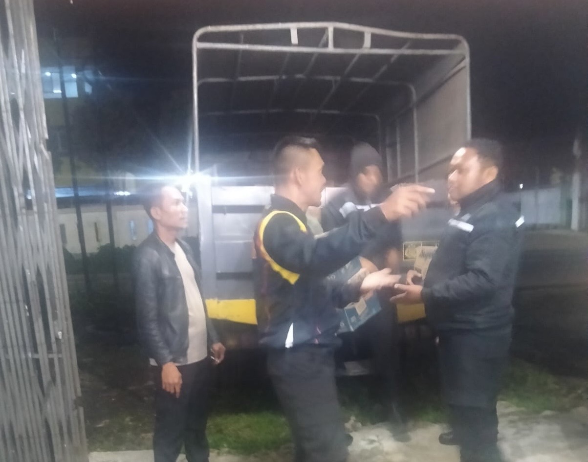 Bantuan yang di distribusikan, antara lain berupa 200 kardus Aqua, 70 Kardus Indomie dan 15 kardus biskuit kering