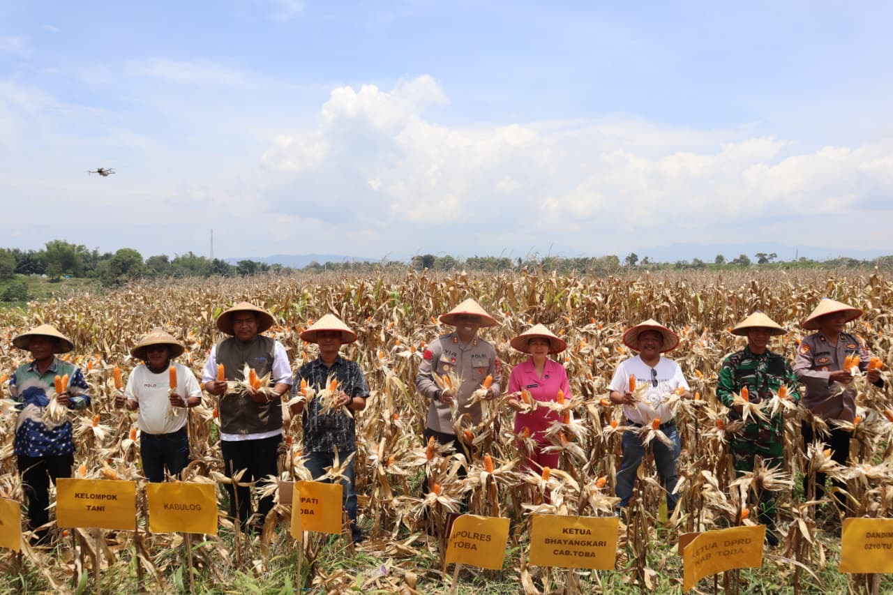 Polres Toba menggelar Panen Raya Jagung Serentak Kuartal III bertempat di Pollak Rimba Dusun I Desa Matio Kecamatan Balige Kabupaten Toba Provinsi Sumatera Utara, Sabtu (27/9/2025)