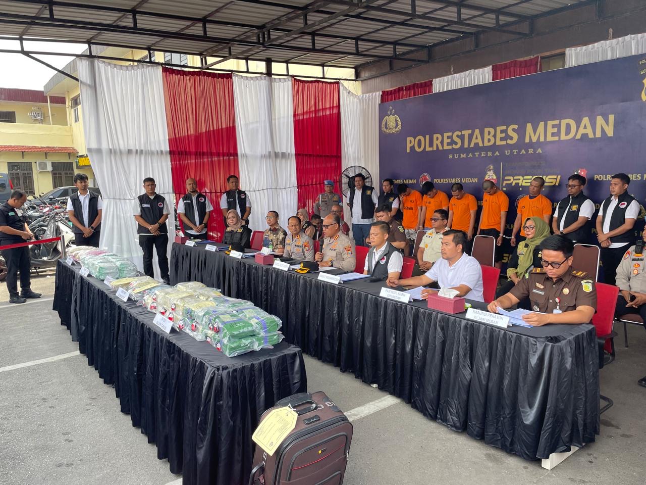 “Yang kita musnahkan adalah hasil dari 2 penindakan, yang pertama pada Senin (21/7/2025) dengan berat 1Kg dan yang kedua di hari yang sama disita sabu seberat 19kg dan 58.750 butir pil ekstasi,” kata Kapolrestabes Medan, Kombes Pol. Dr. Gidion Arif Setyawan dalam rilisnya.
