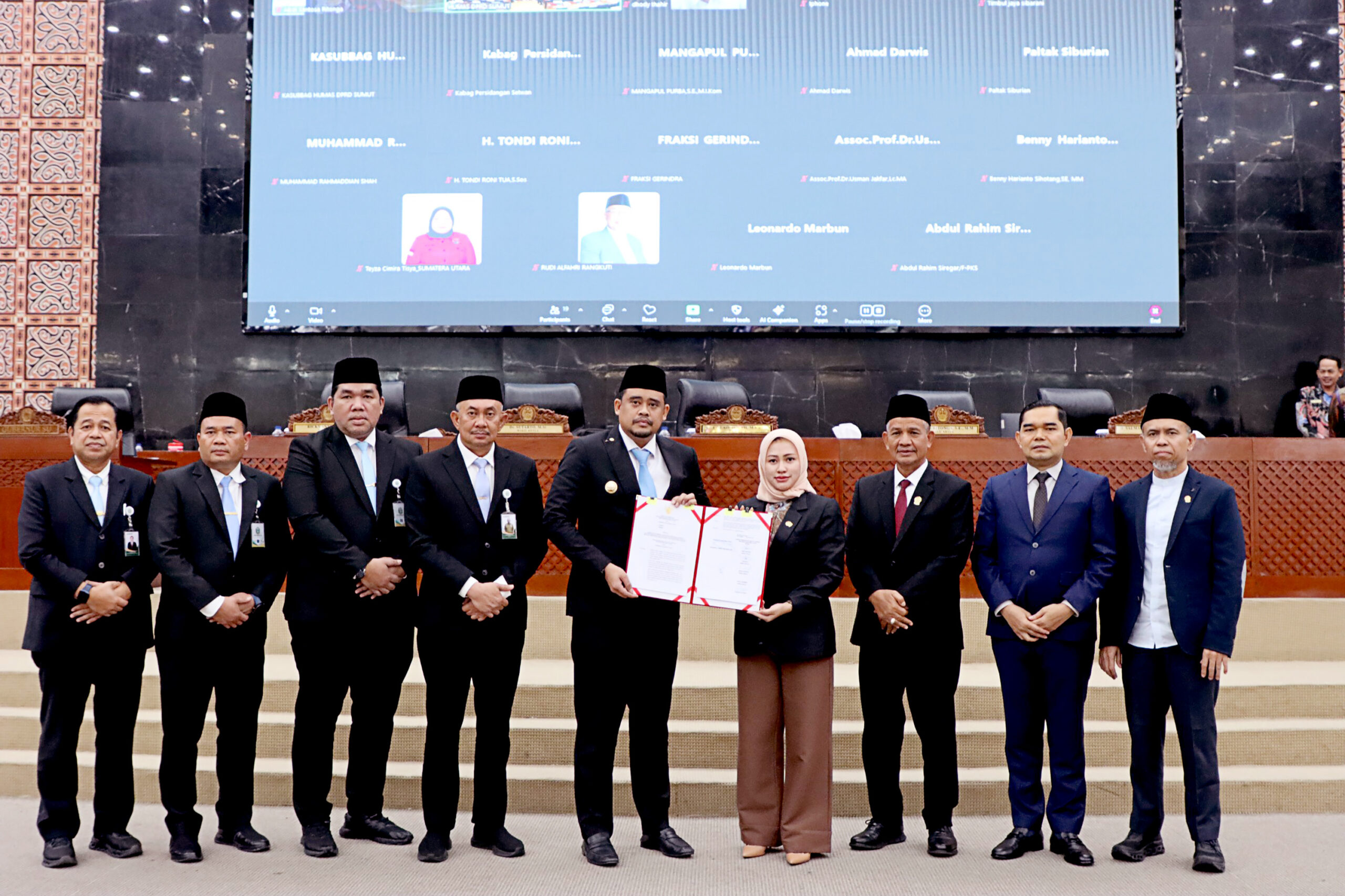Pengesahan itu dilakukan pada Rapat Paripurna DPRD Sumut dalam agenda penyampaian pendapat akhir fraksi-fraksi tentang R-APBD Sumut TA 2026, yang dipimpin Ketua DPRD Sumut Erni Aryanti Sitorus didampingi Wakil Ketua Dewan Sutarto, Ihwan Ritonga, Salman Alfarisi dan dihadiri Gubernur Sumut Muhammad Bobby Afif Nasution, Jumat (28/11/2025), di Gedung DPRD Sumut, Jalan Imam Bonjol Medan.