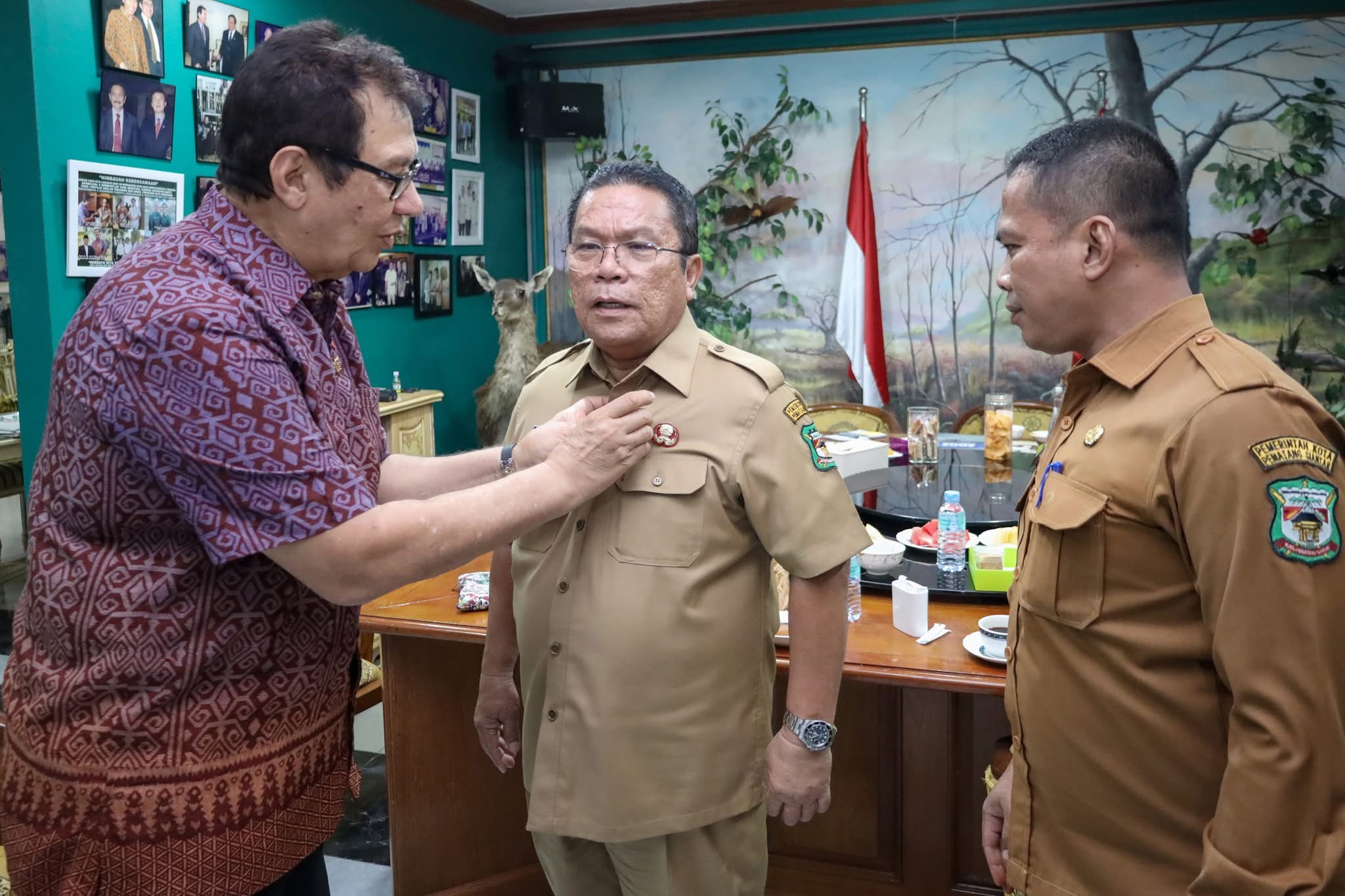 Wali Kota Pematangsiantar Wesly Silalahi SH MKn bertemu Rahmat Shah. Pertemuan berlangsung digelar di Mess Rahmat Shah, Jalan Kapten MH Sitorus Pematangsiantar, Senin (23/06/2025) sore. Di akhir pertemuan, Rahmat Sehat menyematkan pin Perhimpunan Kebun Binatang Seluruh Indonesia (PKBSI) kepada Wesly.