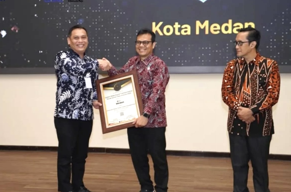 Penghargaan tersebut diserahkan kepada Wali Kota Medan Rico Tri Putra Bayu Waas diwakili Kepala Dinas Komunikasi dan Informatika Kota Medan Arrahmaan Pane dalam acara Seminar Nasional sekaligus penyerahan penghargaan GM-DTGI Award 2025 di Auditorium Sukadji Ranuwihardjo, Kampus UGM, Kamis (18/9/2025).