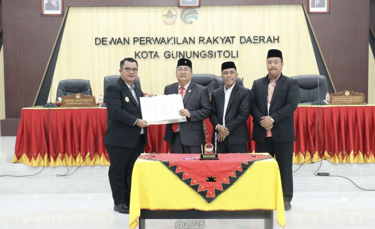 Wali Kota Gunungsitoli Sowa’a Laoli, SE, M.Si menghadiri rapat Paripurna DPRD Kota Gunungsitoli Dalam Rangka Penyampaian Rekomendasi DPRD Kota Gunungsitoli Terhadap LKPJ Wali Kota Gunungsitoli Tahun Anggaran 2024 yang bertempat di Ruang Rapat DPRD Kota Gunungsitoli, Kamis (15/05/2025).