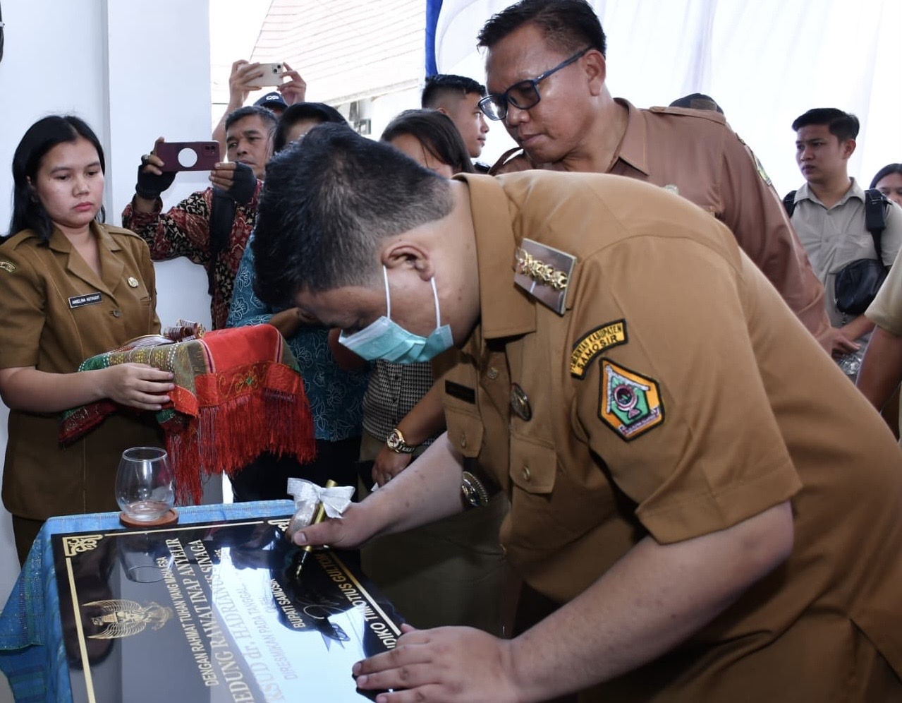 Bupati Samosir Vandiko T. Gultom meresmikan Gedung Rawat Inap Anyelir dan Gedung Perinatologi RSUD Hadrianus Sinaga. Peresmian ditandai dengan pengguntingan pita dan penandatangan prasasti, Senin (9/12).