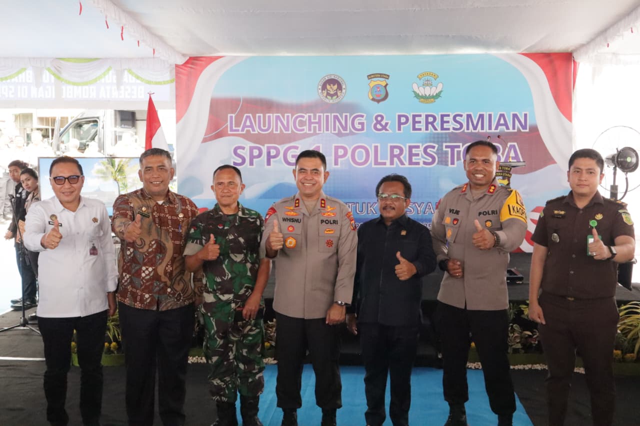 Dukung Program Makan Bergizi Gratis (MBG), Kapolda Sumut Irjen Pol Whisnu Hermawan Februanto SIK MH, didampingi Ibu Ketua PD Bhayangkari Sumatera Utara Ny. Mona Whisnu, meresmikan Satuan Pelayanan Pemenuhan Gizi (SPPG) atau Dapur Makan Bergizi Grtais (MBG) Polres Toba, Kamis (20/11/2025).