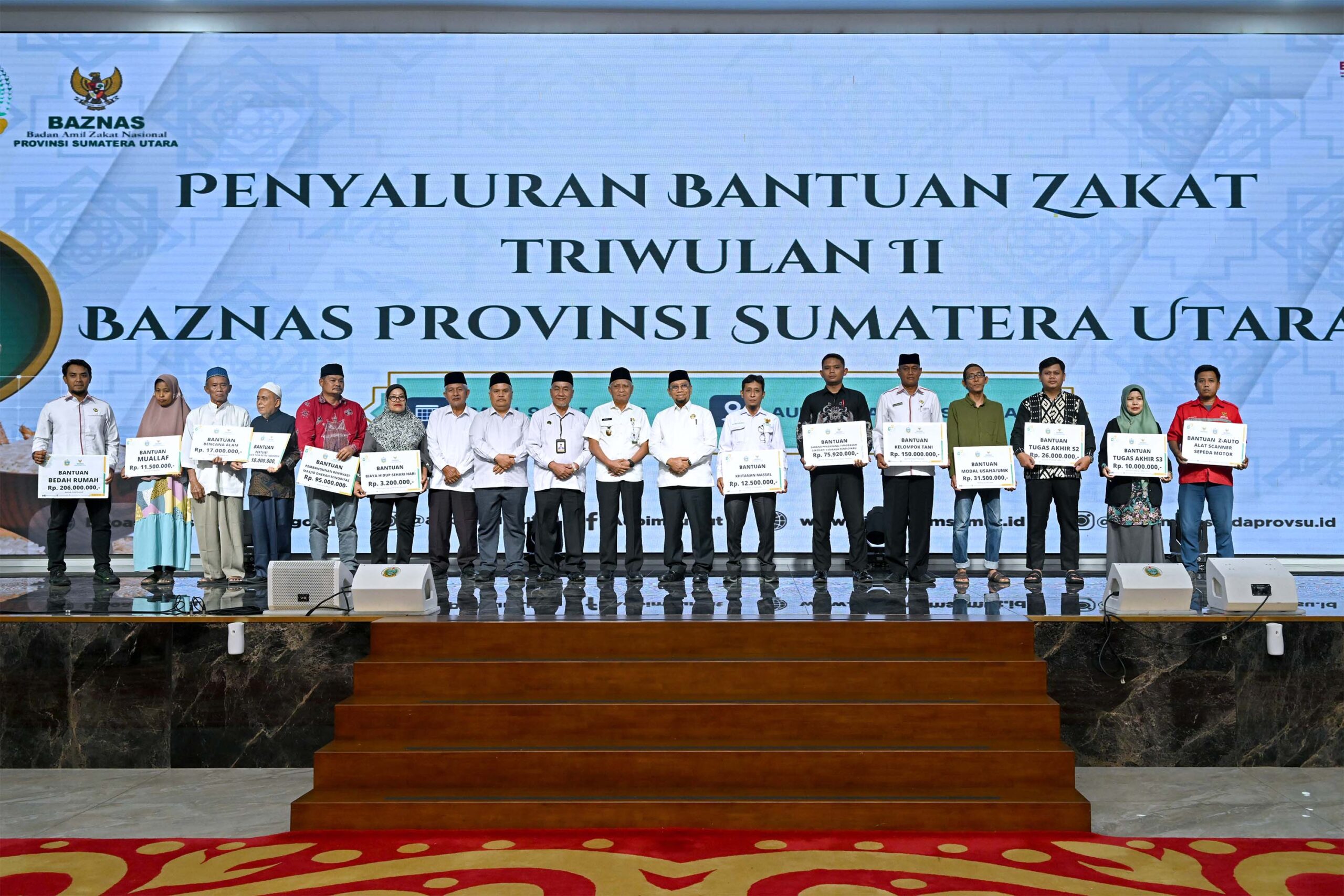 Wakil Gubernur (Wagub) Sumatera Utara (Sumut) Surya menyerahkan secara simbolis Zakat, Infak dan Sedekah (ZIS) Triwulan II 2025, dari Badan Amil Zakat Nasional (Baznas) kepada mustahik. ZIS menurut Surya, punya peran penting dalam pembangunan sosial dan ekonomi Sumut.