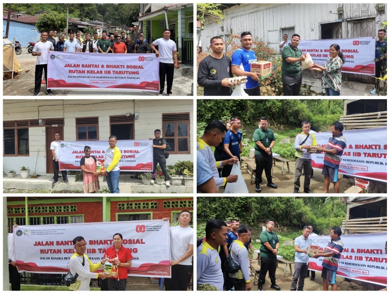 Rumah Tahanan Negara (Rutan) Kelas IIB Tarutung menggelar jalan santai di lingkungan sekitar Rutan serta menyalurkan sembako bagi masyarakat yang membutuhkan, Sabtu (16/8). Kegiatan ini di ikuti oleh Kepala Rutan Tarutung, Evan Yudha Putra Sembiring beserta Kasubsi Pelayanan Tahanan, Jonias B. Pakpahan, Kasubsi Pengelolaan, Mian H.R. Simarmata, Kepala Kesatuan Pengamanan Rutan, James Bond Naibaho, jajaran pegawai Rutan Tarutung dan rekan-rekan media pers.