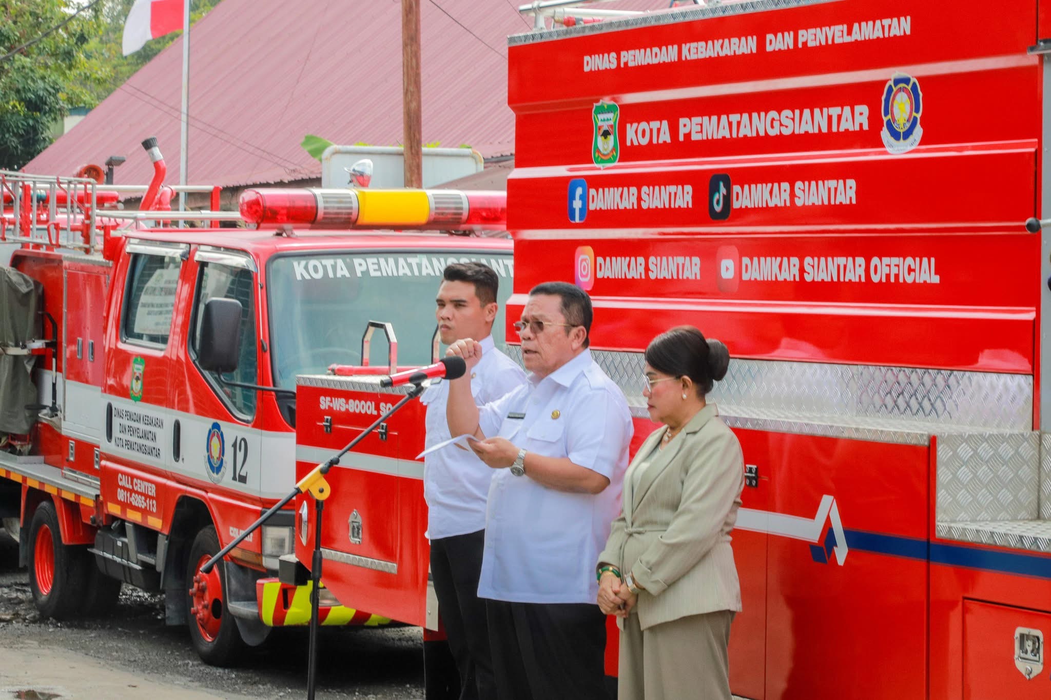 Wali Kota Pematangsiantar Wesly Silalahi SH MKn memimpin apel serah terima armada (mobil) baru kepada Dinas Pemadam Kebakaran dan Penyelamatan (Disdamkarmat) Kota Pematangsiantar. Penyerahan armada secara simbolis dilakukan langsung oleh Wesly didampingi Ketua TP PKK Kota Pematangsiantar Ny Liswati Wesly Silalahi kepada Kepala Disdamkarmat Herri Okstarizal SH. Kegiatan ini digelar di Kantor Disdamkarmat Kota Pematangsiantar, Jalan Tarutung, Rabu (21/01/2026) sore.