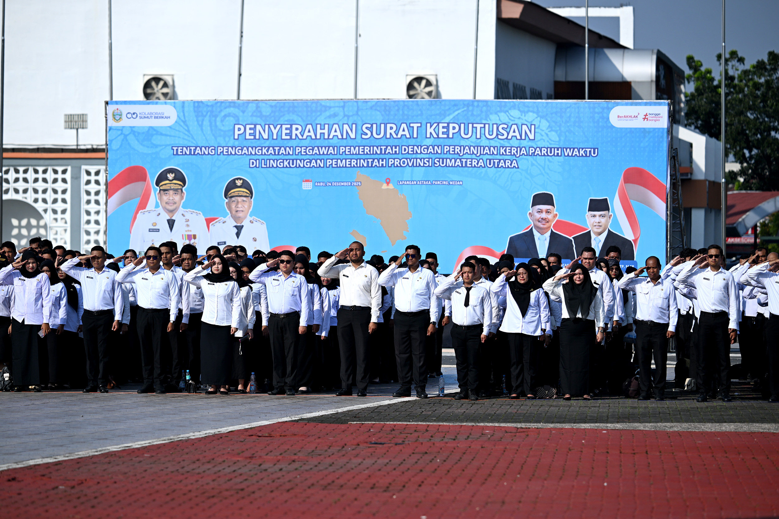 Gubernur Sumatera Utara (Sumut) Muhammad Bobby Afif Nasution menyerahkan Surat Keputusan (SK) tentang pengangkatan Pegawai Pemerintah dengan Perjanjian Kerja (PPPK) Paruh Waktu kepada 11.625 PPPK Paruh Waktu di lingkungan Pemerintah Provinsi (Pemprov) Sumut. Jumlah tersebut terdiri atas 7.522 orang tenaga guru, 4 orang tenaga kesehatan dan 4.099 orang tenaga teknis.