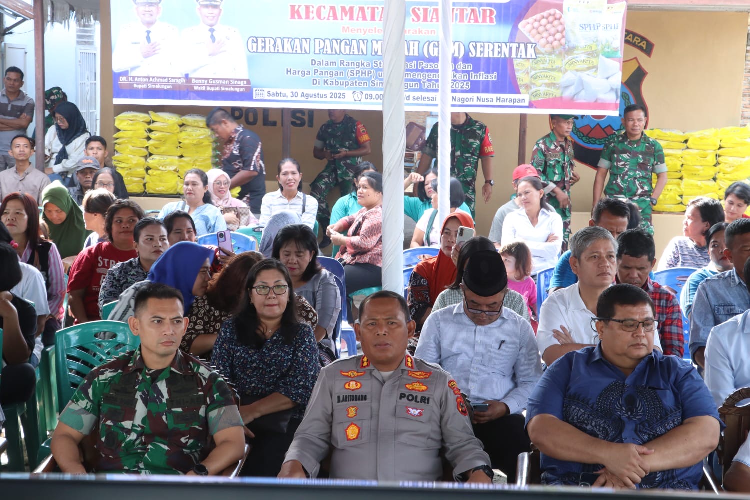 Dalam upaya mendukung program pemerintah pusat menjaga stabilitas pasokan dan harga pangan (SPHP), jajaran Forkopimda Kabupaten Simalungun menunjukkan sinergitas yang solid melalui partisipasi aktif dalam Gerakan Pangan Murah (GPM) yang digelar serentak di 7.285 kecamatan seluruh Indonesia pada Sabtu, 30 Agustus 2025.