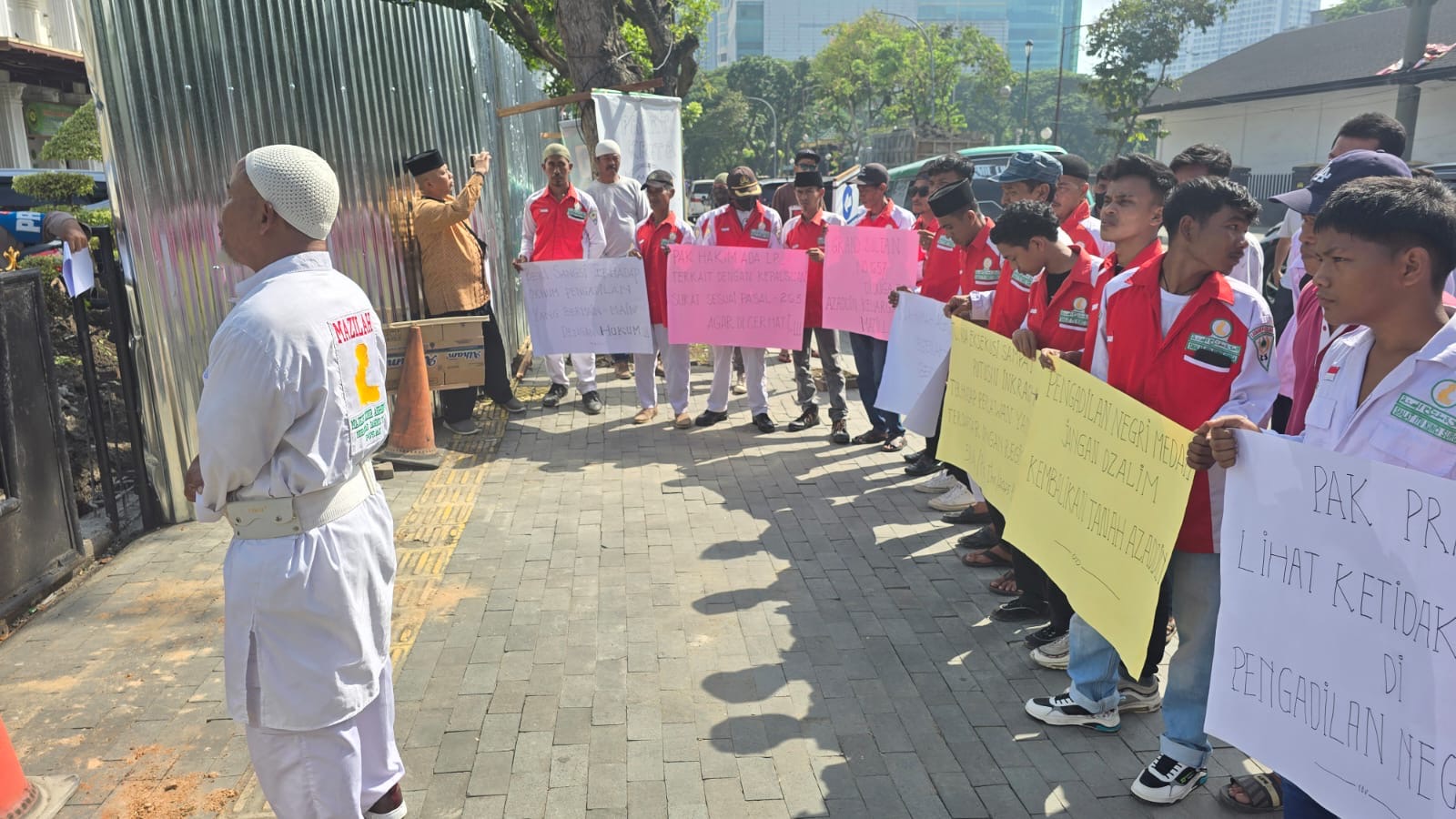 Kembalikan tanah milik saudara kami Muhammad Nur Azaddin. Kami mohon kepada PN Medan agar menunda eksekusi sampai putusan Inkcrah,”tegas Koordinator Aksi yang juga Ketua DPW Mazilah Deliserdang, Syamsir Bukhori, Senin (14/7/2025)