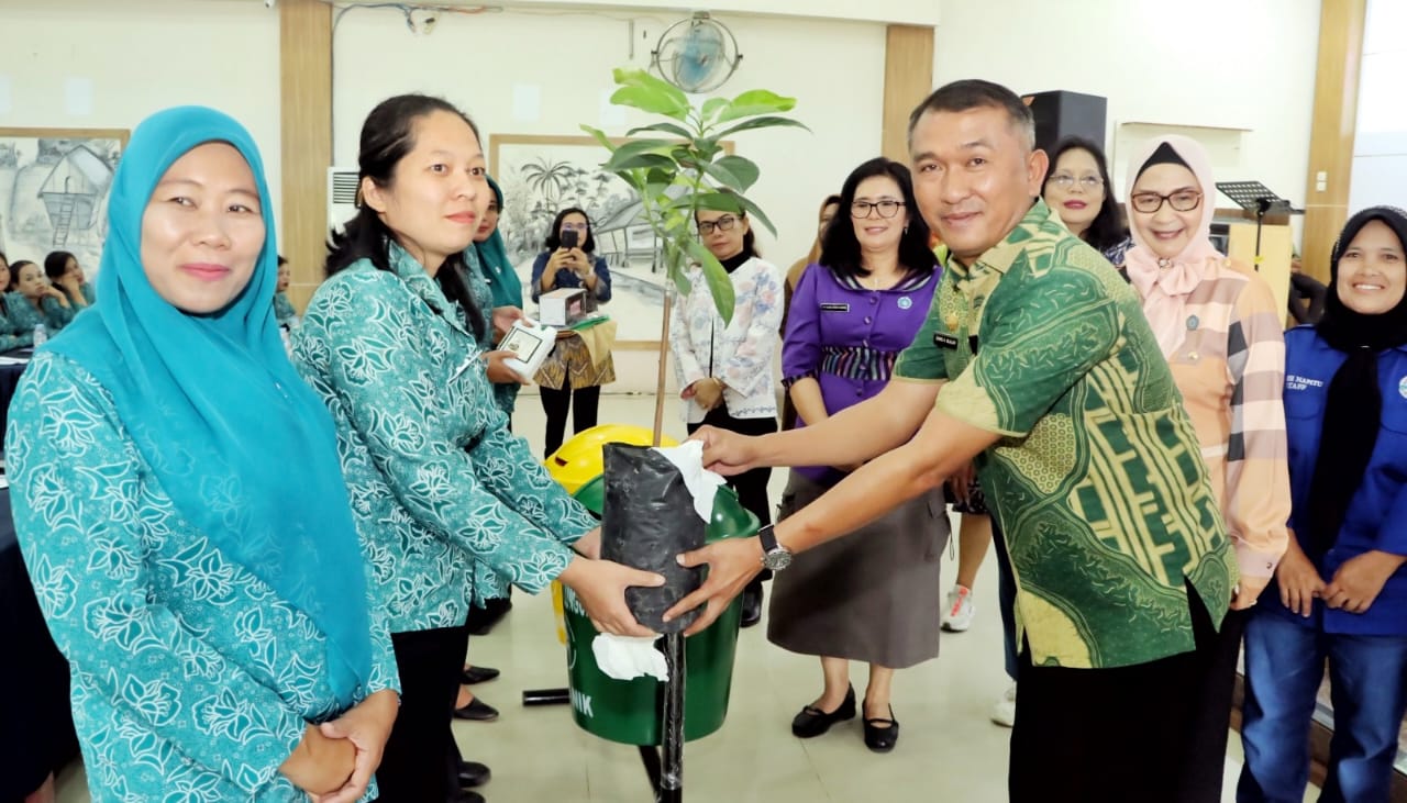 Sosialisasi ini juga diwarnai dengan penyerahan bantuan berupa tong sampah dan bibit tanaman kepada para peserta, sebagai bukti komitmen nyata PKK dalam mendukung gerakan lingkungan.