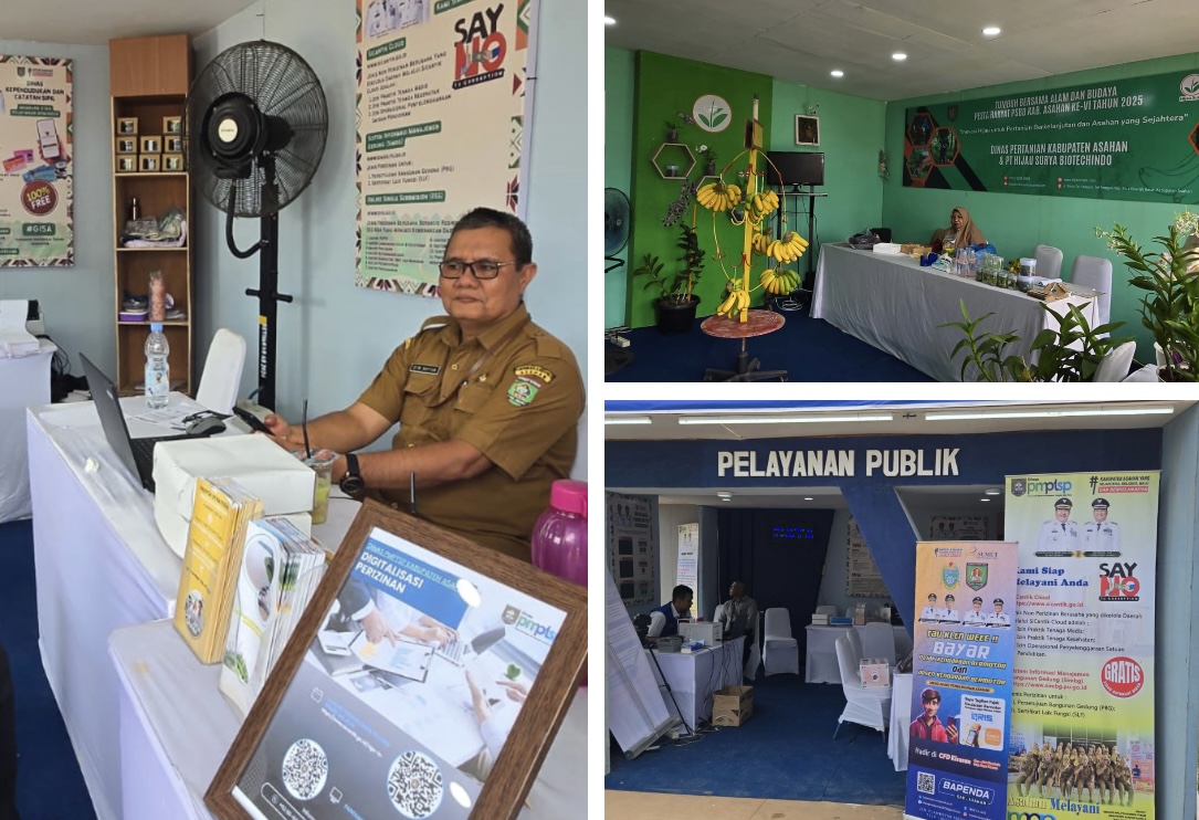 Kemudahan juga diberikan melalui Dinas Penanaman Modal dan Pelayanan Terpadu Satu Pintu (DPMPTSP) yang menghadirkan layanan perizinan secara daring berbasis digital. Beberapa sistem yang digunakan antara lain Sicantik Cloud untuk perizinan non-berusaha, SIMBG untuk perizinan bangunan gedung dan sertifikat laik fungsi, serta OSS untuk perizinan berusaha berbasis risiko. Sementara itu, Dinas Pertanian Kabupaten Asahan bersama PT Hijau Surya Biotechnindo menampilkan stand bertema “Tumbuh Bersama Alam dan Budaya” dengan menonjolkan produk pertanian seperti pisang, anggrek, dan berbagai bibit hasil inovasi hijau untuk pertanian berkelanjutan.