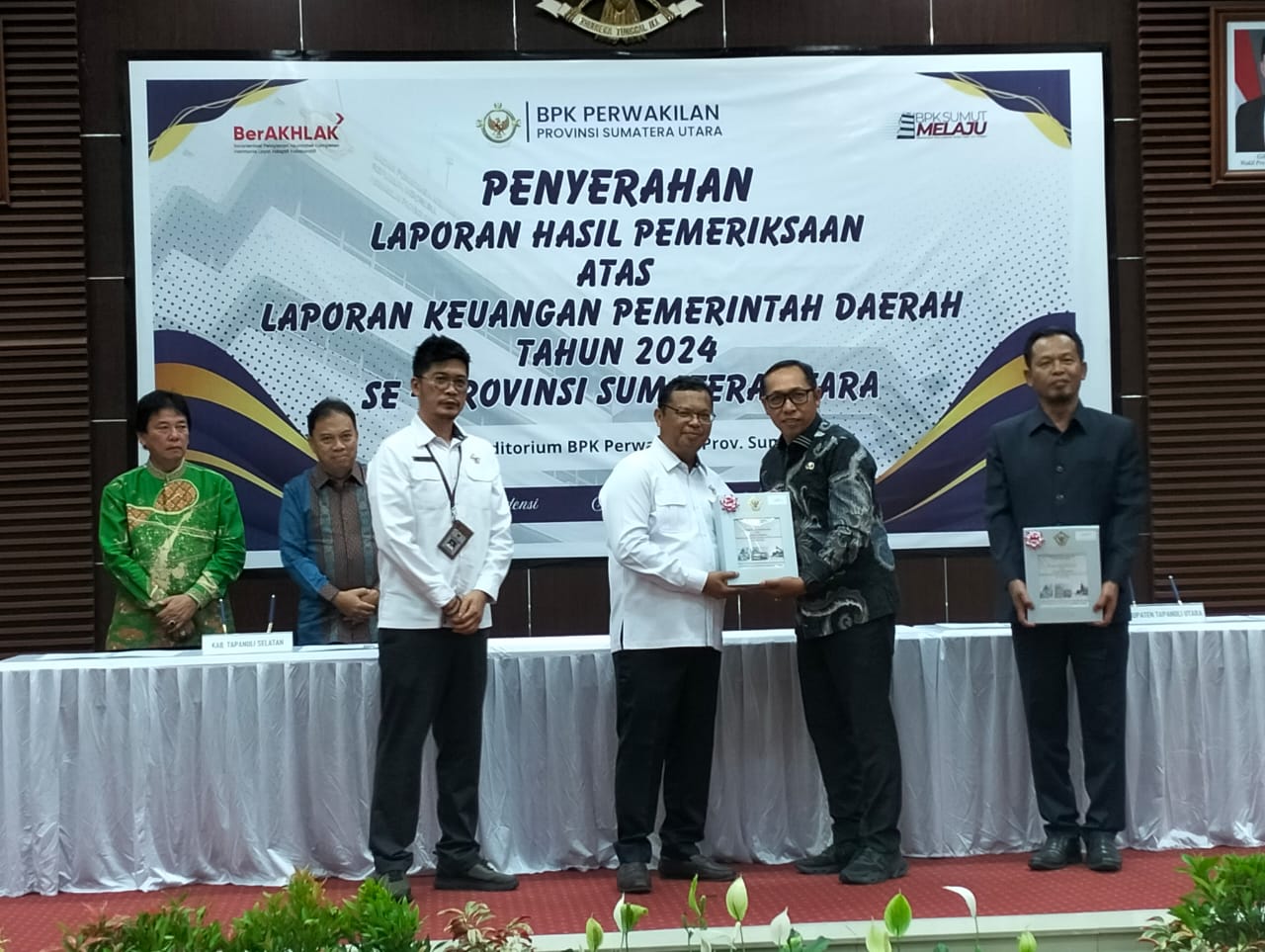 Laporan Hasil Pemeriksaan (LHP) atas laporan keuangan tersebut diserahkan langsung oleh Kepala BPK Provinsi Sumatera Utara, Paula Henry Simatupang, S.E., M.Si., Ak., CA., CFrA., CPA(Aust)., CSFA., ACPA., GRCP., GRCA., ERMA kepada Bupati Tapanuli Utara, Dr. Jonius Taripar Parsaoran Hutabarat, S.Si, M.Si, yang hadir bersama Ketua DPRD Tapanuli Utara Arifin Rudi Nababan, dalam prosesi resmi yang berlangsung di Auditorium BPK Perwakilan Provinsi Sumatera Utara, Medan, Senin (26/5/2025).