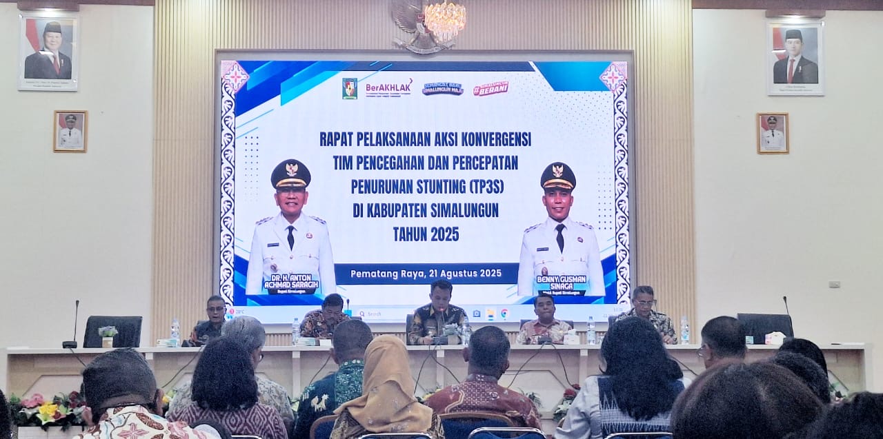Dalam rangka percepatan penurunan angka prevalensi stunting menjadi 14% pada tahun 2025, Pemerintah Kabupaten (Pemkab) Simalungun menggelar Rapat Pelaksanaan Aksi Konvergensi Tim Pencegahan dan Percepatan Penurunan Stunting (TP3S), Kamis (21/8/2025).